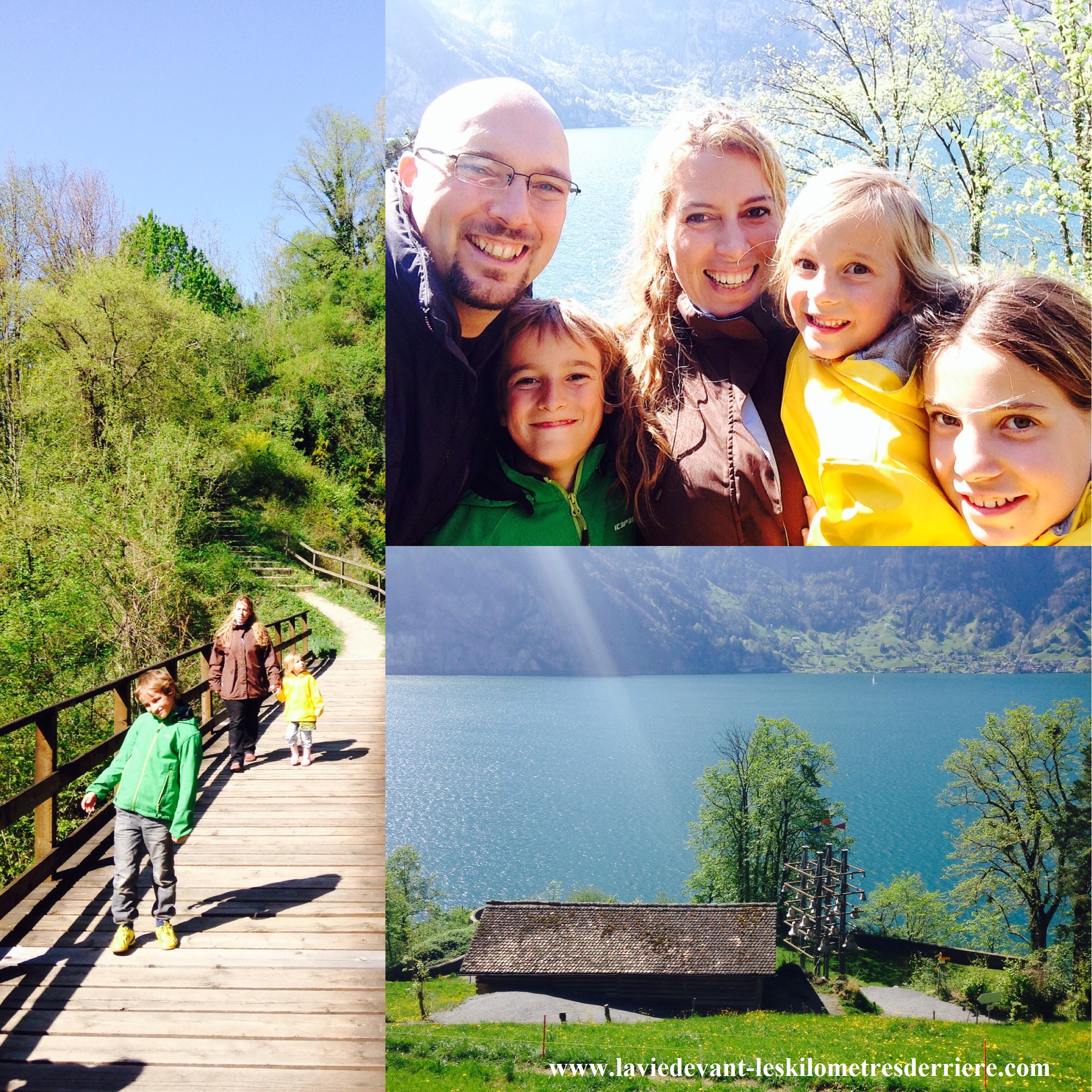 Après une nuit calme, nous avons passés la matinée tranquillement au camping pendant que les enfants s’amusaient ensemble. C’est l’après-midi que nous avons repris la route et fait une partie du tour du lac des 4 cantons. C’est au Tellsplatte que nous sommes allés marcher en famille, là où selon le mythe Guillaume Tell aurait sauté du bateau du Bailli Gessler, celui qu’il tua de son arbalète plus tard dans l’histoire. Si vous recherchez un endroit pour vos ballades dominicales, hors des paysages habituels, rendez-vous là-bas. L’endroit est juste fantastique !