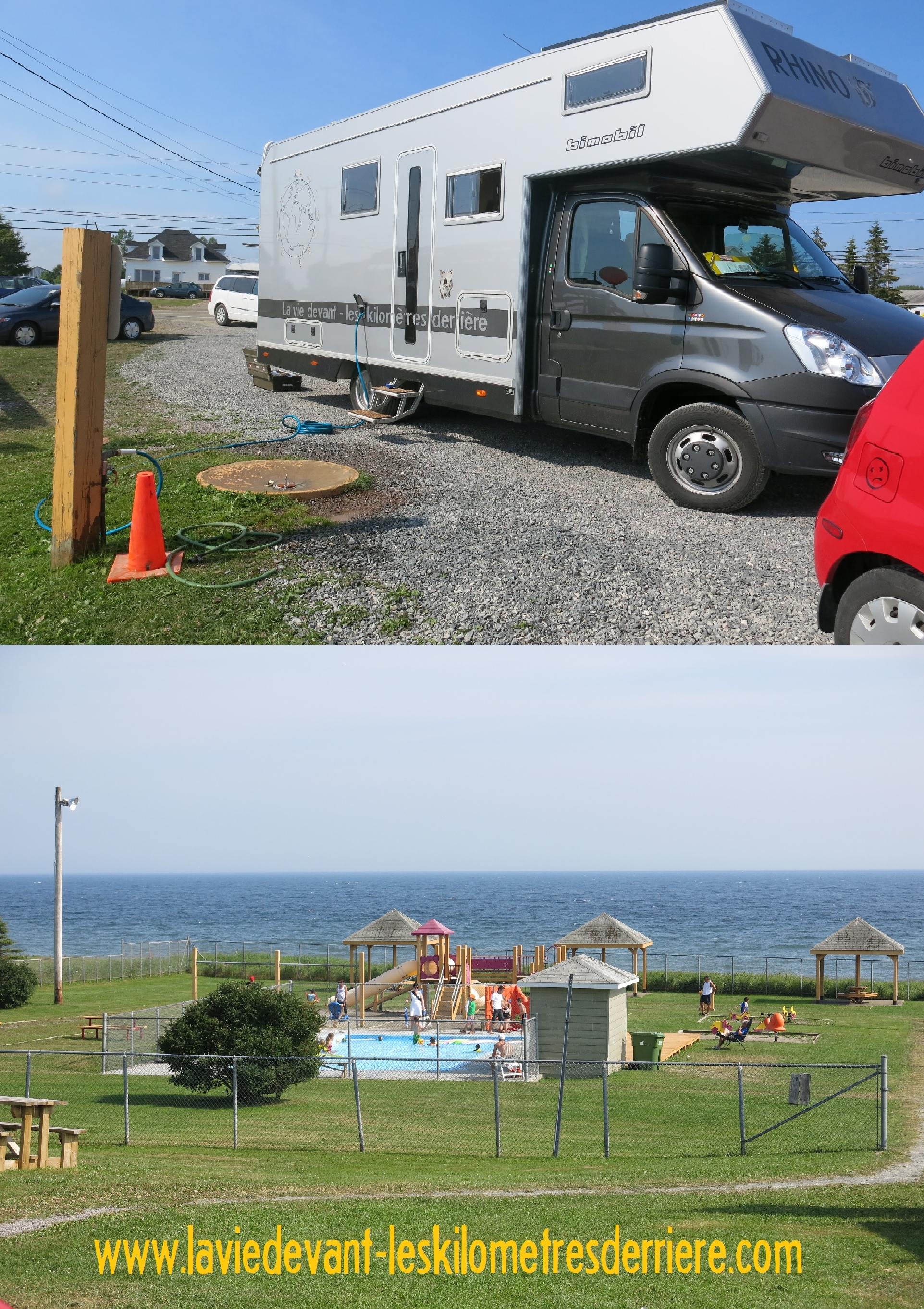 A Grande Rivière, une air avec dump et eau bien pratique pour vidanger Rhino et faire le plein d’eau potable. Les enfants auront profité du petit parc de jeu avec petite piscine gratuite.