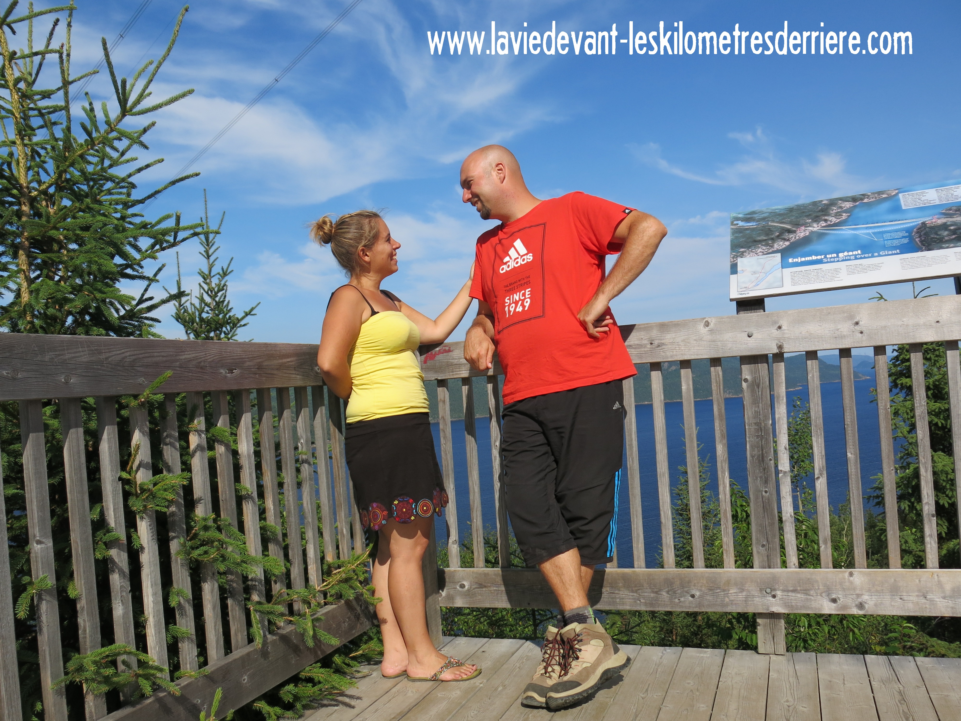 En fin d’après-midi, nous avons repris la route jusqu’à St-Joseph-de-la-Rive. Sans savoir ce que nous y trouverions, nous avons finalement découvert un chouette endroit pour bivouaquer. A côté d’une ancienne école, sur un parking destiné aux touristes, avec les commodités nécessaires et un accès à la plage situé en contre-bas. La nuit fut très bonne et calme. Nous avons profité de prendre une bonne matinée de tranquillité et ainsi vaqué à nos loisirs respectifs, soit fitness-musculation pour moi et onglerie pour madame. Bénéficiant d’une connexion wi-fi venant de je ne sais où, nous avons pu Skyper avec ma sœur et sa famille ainsi que mon papa. Ça fait du bien de communiquer avec les siens !