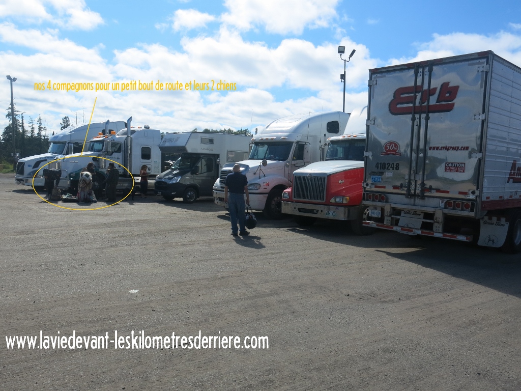 16.08 Nous nous rendons, ce jour-ci, à Thunder Bay. Sur la route, alors que je remettais le contact pour repartir d’une station-service, je vois un camping-car qui me semble drôlement européen… en descendant les yeux vers sa plaque, quelle ne fut pas ma surprise lorsque je réalisai que nous étions en face de zurichois ! Jolie rencontre avec Sarah et Thomas qui seront restés environ 1h pour boire un café dans Rhino, puis avons chacun repris nos routes, puisqu’eux partait vers l’est et nous vers l’ouest. Mais en sortant du village, nous avons encore fait un rencontre. 2 auto-stoppeurs américano-canadiens accompagnés de leurs 2 labradors. En faisant une nouvelle halte 1h30 plus tard, nous avons ajouté, à ces 2 jeunes voyageurs, 2 autres personnes faisant du pouce sur l’aire d’autoroute. Rhino était plein comme jamais avec au total 6 adultes dont 4 avec de très gros sacs-à-dos, 3 enfants et 2 chiens…