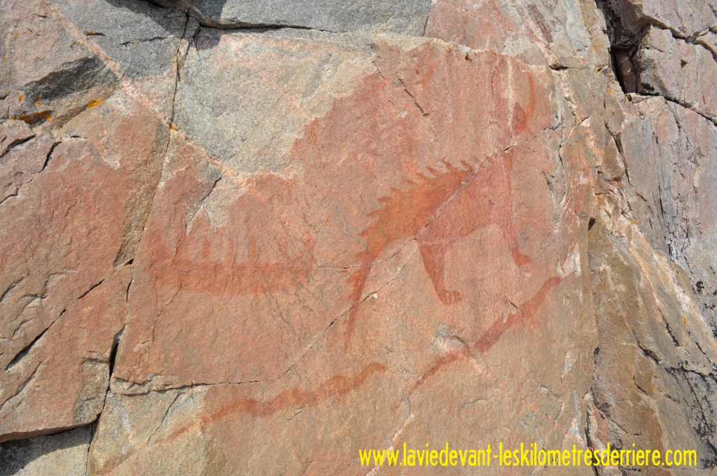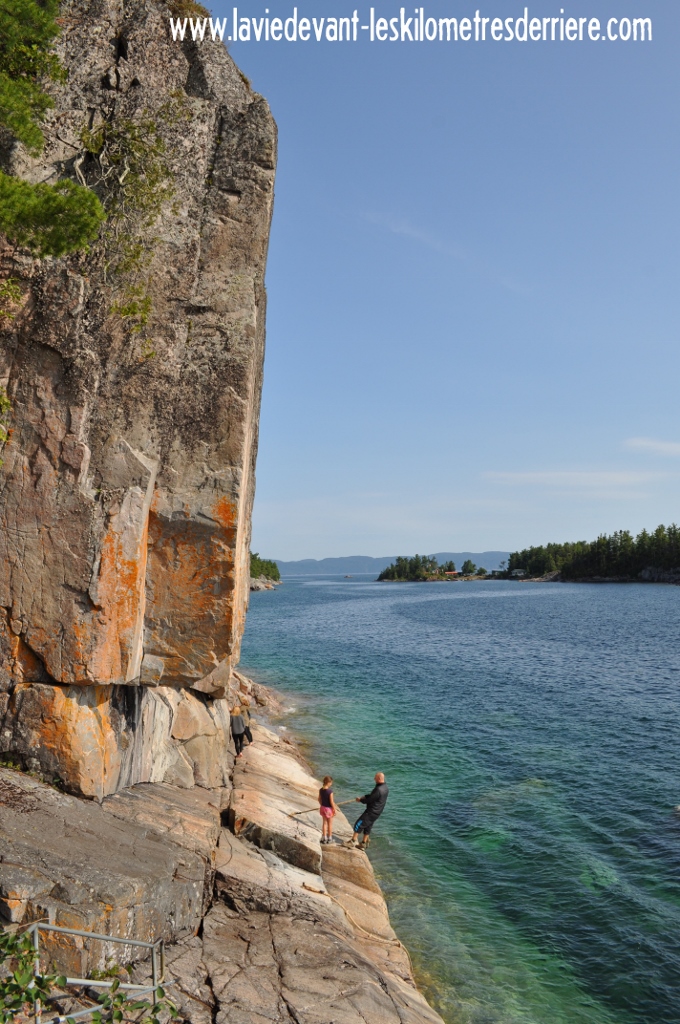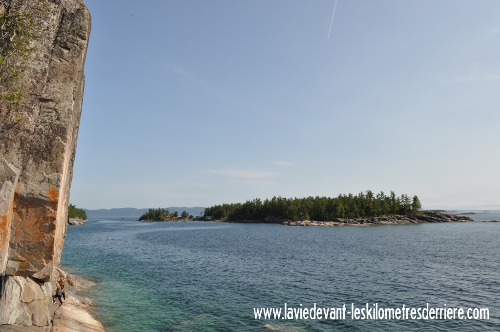 15.08 Route jusqu’à White River où nous dormons à côté de l’école avec la fête de Winnie the Poo comme voisin à quelques 200m. Un long feu d’artifice nous a tirés hors de Rhino pour le contempler. Sinon, avant cela, nous nous étions arrêtés à Agawa Rocks, paroi rocheuse avec inscriptions indiennes de 400ans.