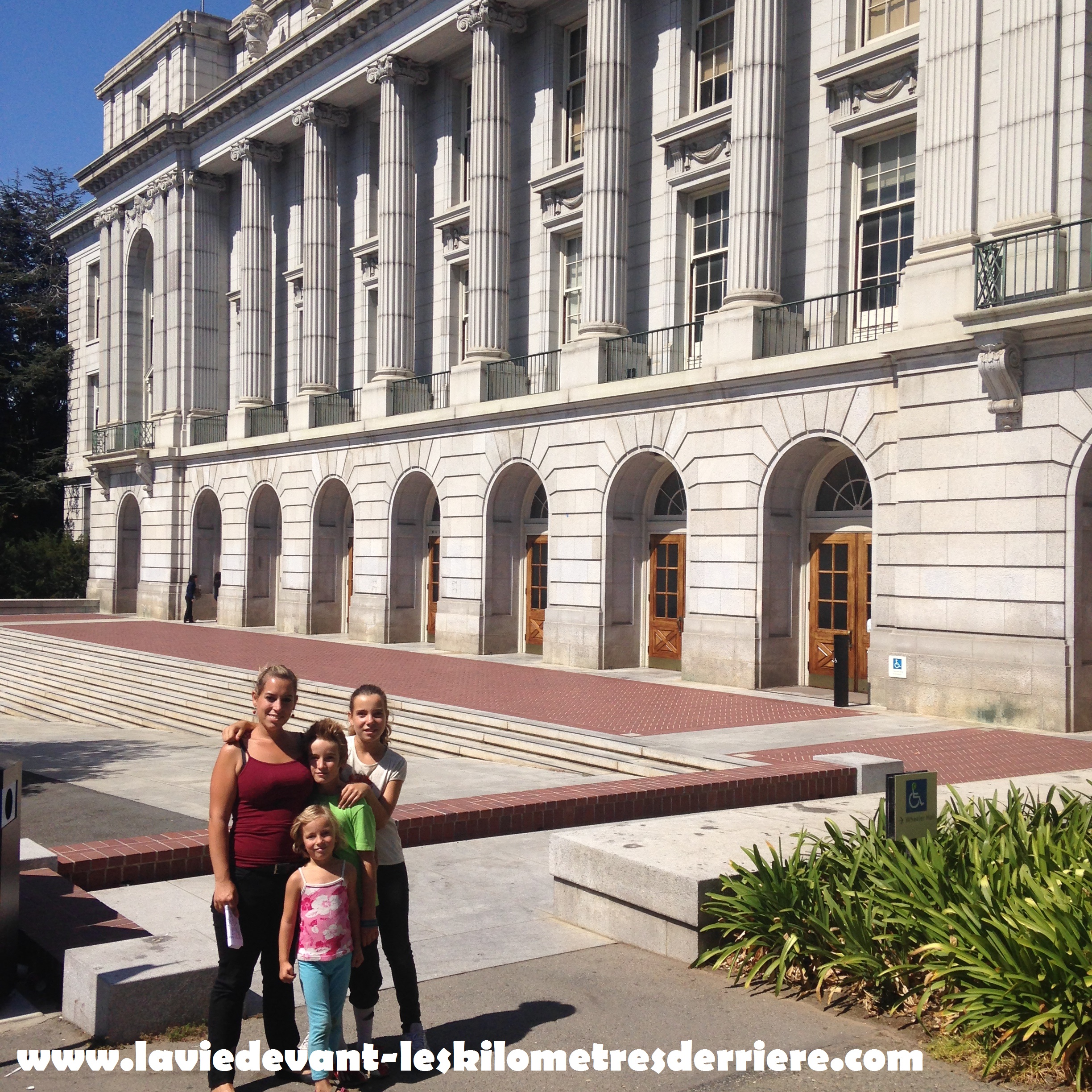 Samedi, en quittant San Francisco, nous nous sommes arrêtés sur wine treasure island. C’est un îlot dans la baie de SF qui offre une belle perspective sur la ville. Suite à ça, nous avons été visiter le campus universitaire de Berkley. C’était pour nous l’occasion de découvrir ce que pouvait être la grandeur d’un site universitaire américain. Et bien c’est assez impressionnant ! Nous nous sommes baladés durant une quarantaine de minutes pour voir un tiers du campus !