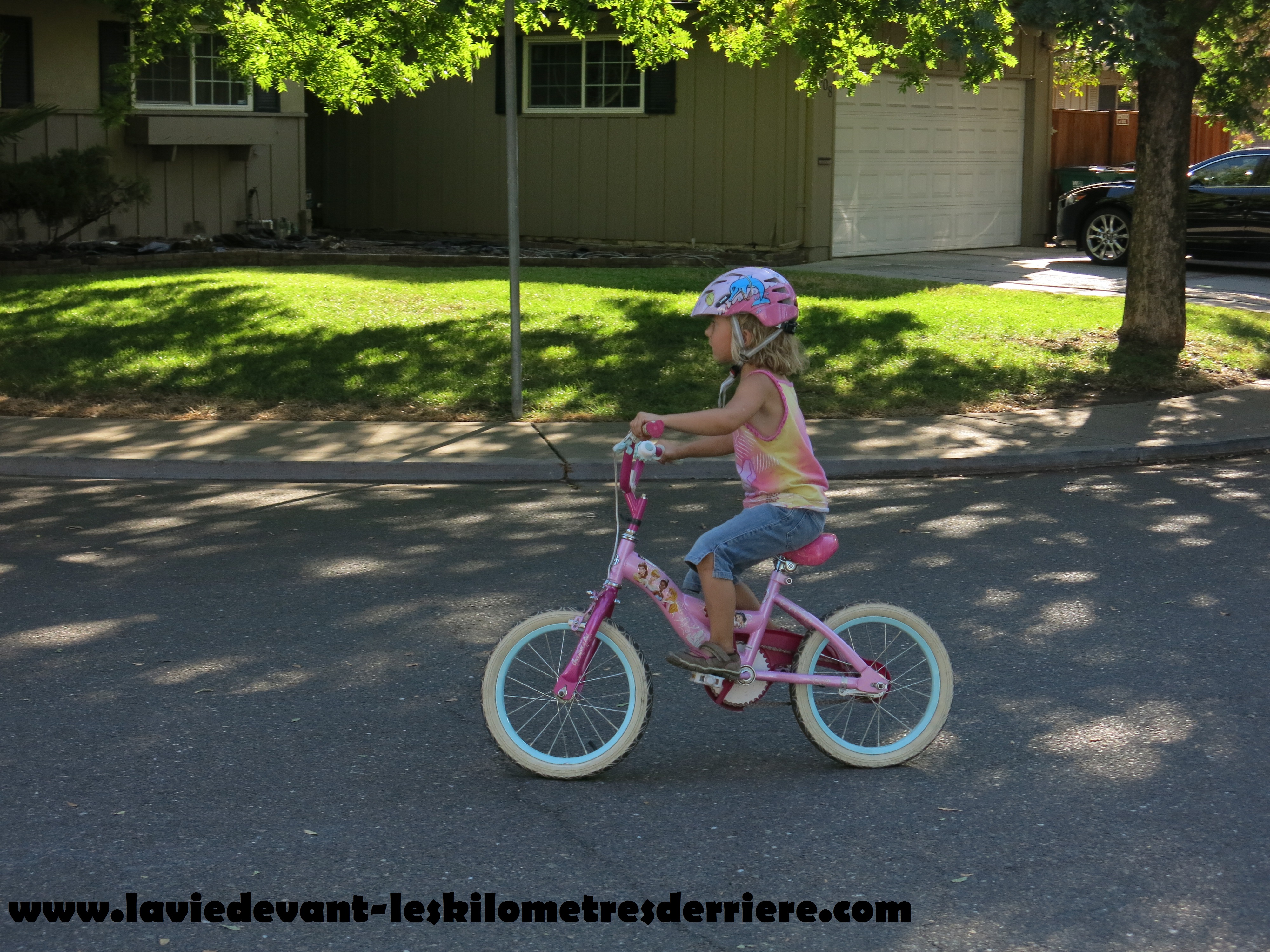 Durant ce moment chez eux, Amélie en a profité pour faire du vélo…. Ses premiers coups de pédales ! Depuis longtemps, elle sait en faire mais avec un vélo d’équilibre (en poussant avec les jambes, sans pédales). Du coup, comme sa cousine Maya avait son vélo dans le garage, Jimmy a mis Amélie dessus, l’a tenu quelques mètres et elle s’est ensuite débrouillée comme une grande. Ils ont alors décidé d’appeler les parents pour leur montrer…. C’est trop chou de les voir faire ces choses en toute autonomie sans avoir besoin de nous, ces p’tits bouts !