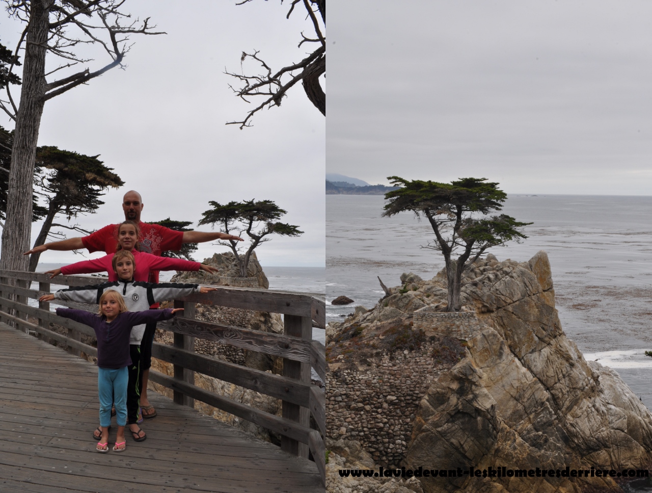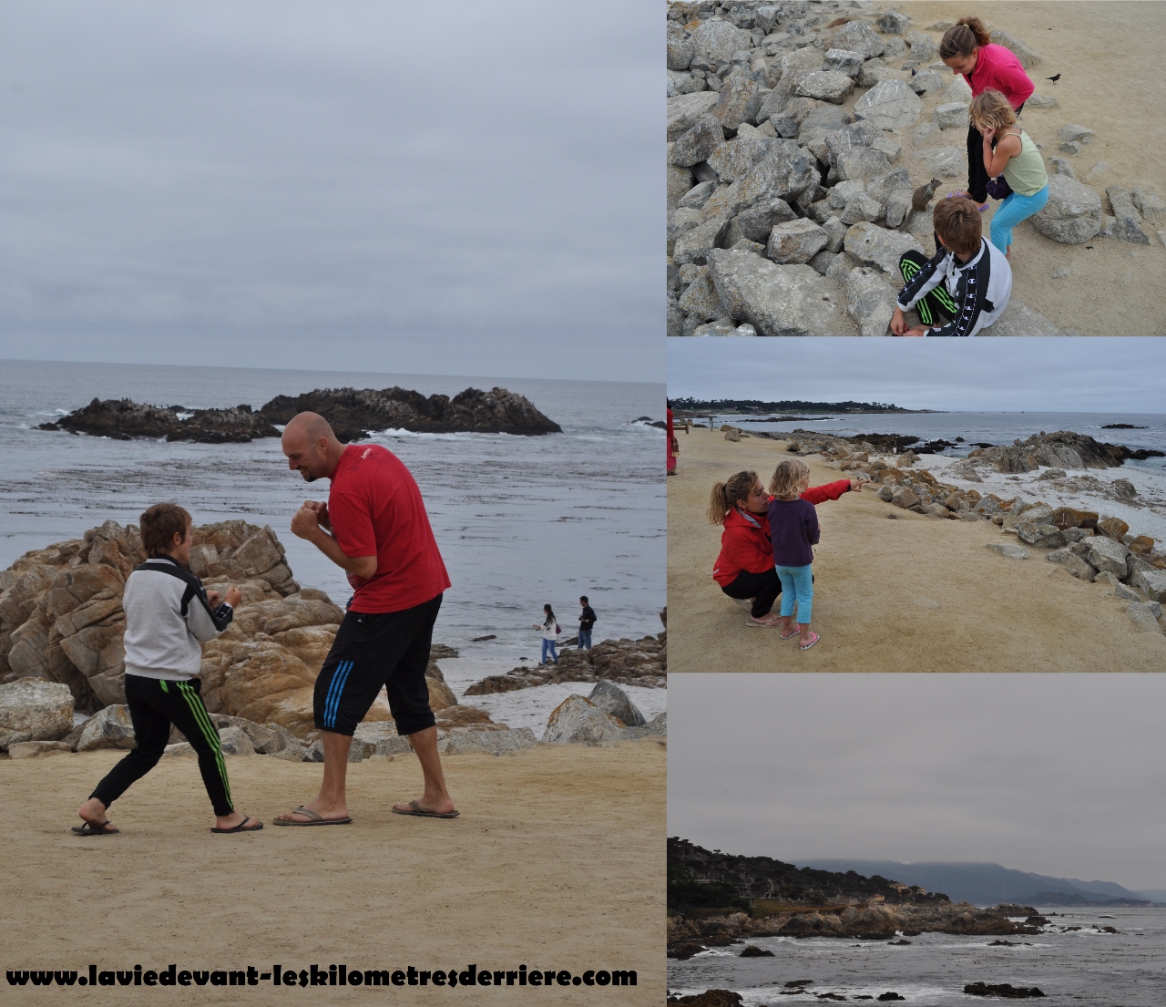 Ensuite, nous avons fait la 17mile drive. Route scénique très connue, entre Pacifique grove et Carmel. Ici, vous trouverez des panoramas incroyables, des maisons de très riches personnes et des terrains de golf longeant la route. Malheureusement, le temps était couvert et les couleurs un peu ternes. Cela ne nous a pas empêché de profité de ces instants au bord du Pacific, parfois sur de belles plages de sable blanc. Les enfants ont tenté de se baigner un peu mais seuls les orteils auront gouté au froid de cette eau, apparemment à 11°C selon le club de plongé local.
