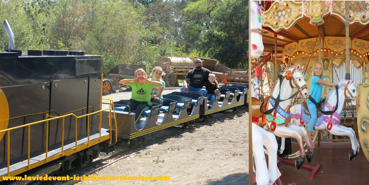 Sur la route pour Yosemite, nous avons fait une halte improvisée à Casa di Fruta. C’est un gros site de production fruitière et ils y ont construit un espèce de supermarché du fruit et tous ses produits dérivé. Pas assez authentique (il y a des cars remplis de touristes qui s’y arrêtent), nous avons profité de manger sur leur parking et les enfants auront usé de leur argent de poche pour se payer un tour en carrousel.