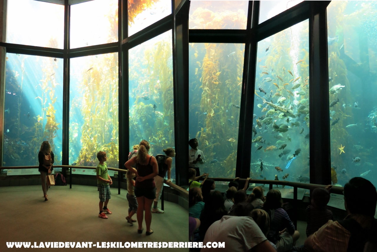 Nous avons pris la route le jeudi matin dans le but faire la visite avant le week-end, moment auquel l’aquarium est bombé ! Après quelques heures de route, nous sommes arrivés en début d’après-midi et avons finalement été au Monterey Bay Aquarium le même jour. Nous avons pu voir les pingouins et les loutres de mer se faire nourrir. Par chance, aux loutres, le guide présentant les animaux était français et les enfants en ont profité pour poser plein de questions.