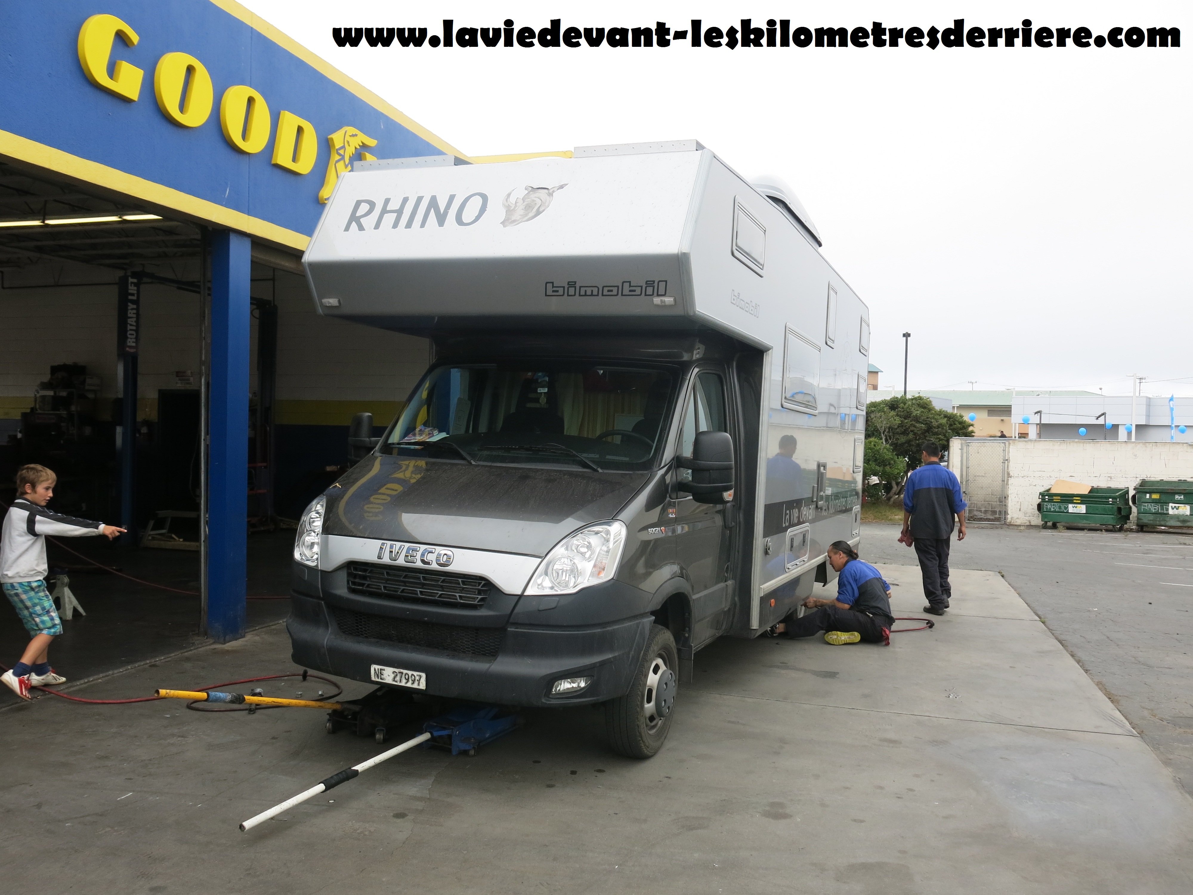 Nous avons donné l’école aux enfants puis nous sommes partis en direction de Yosemite. Sur la route, le garage Fiat nous avons conseillé de nous arrêter dans un garage pour camion, ce que nous avons fait par acquis de conscience. Mais nous n’avons guère eu plus de succès. Par contre, le mécano a été très cordiale et nous a rassuré sur l’effet d’un mauvais parallélisme (aucun risque mécanique mais seulement pour l’usure du pneu) et il a pris le temps d’écouter un bruit à l’arrière de Rhino et de nous expliquer deux ou trois choses sur les suspensions. Il y a des gens vraiment super sur notre route Des gens qui prennent le temps, par simple gentillesse, de vous conseiller et vous rassurer. Merci à eux !