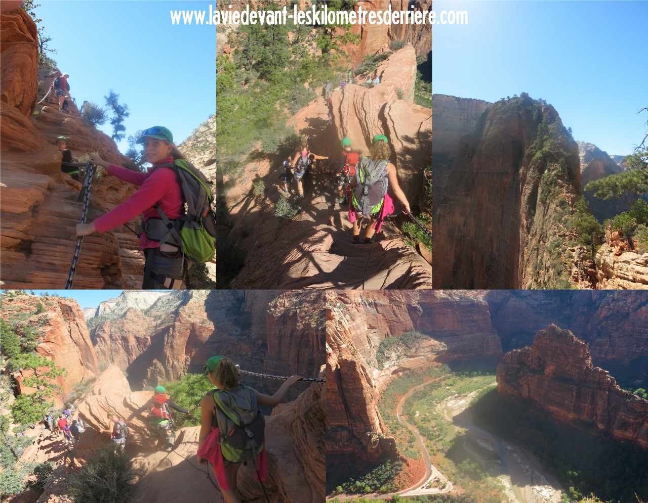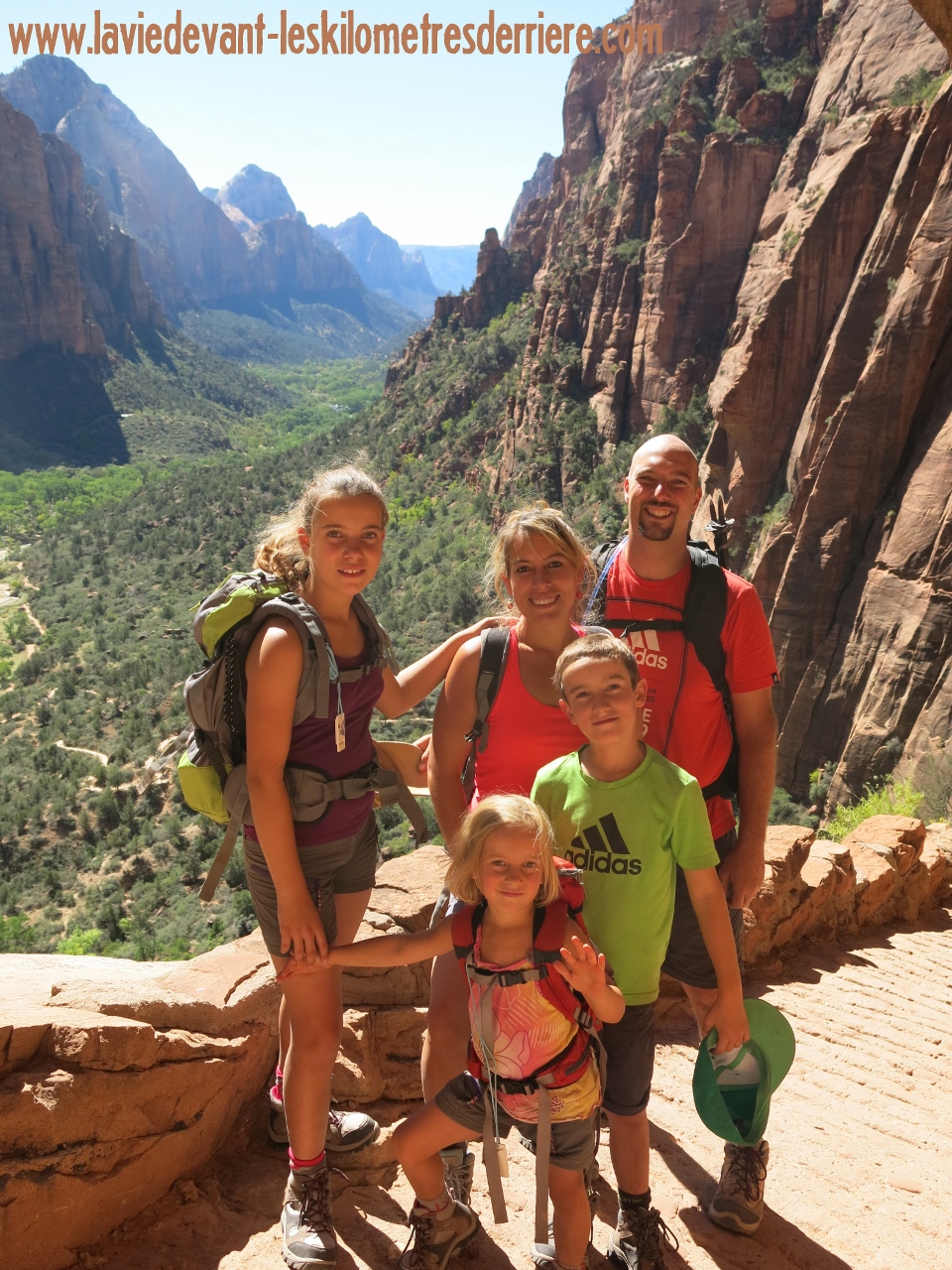 La montée est rude, mais nous avons rejoint le plateau précédent la crête de Angel’s Landing en 45 minutes. Nous avons entendus des français parler entre eux en disant qu’ils ont fait la monté comme des bourrins en un peu moins d’une heure. Vous réalisez, donc, la performance de nos loulous avec mention spéciale à Amélie du haut de ses 105cm !