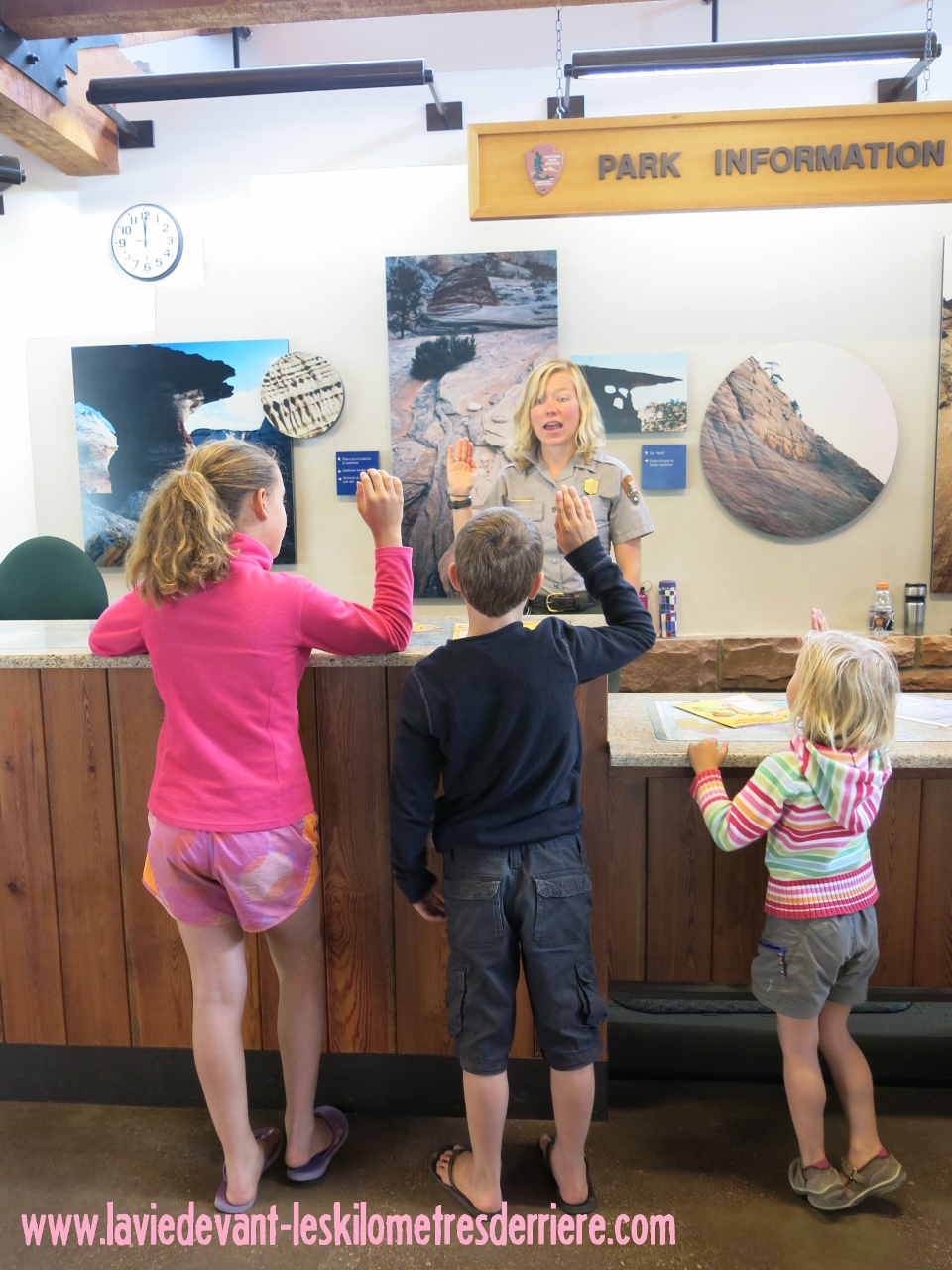 Mardi matin, nous avons fait un peu de ménage dans Rhino. Les enfants sont allés suivre un Ranger Programm afin de faire valider leur Junior Ranger Book. Ils sont revenus à la maison avec leur écusson du Zion Canyon et avons fini ces quelques jours dans ce parc en beauté.
