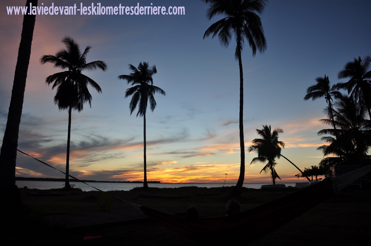 Nous ne serons même pas restés à Mazatlán. La ville nous semblait peu accueillante et définitivement, nous n’aimons pas du tout rester dans les villes ! Ce n’est pas que les gens n’y soient pas accueillant, au contraire, mais que ce sont des villes généralement sales, très polluées et peu adaptées à recevoir des CC si ce n’est dans leurs RV Park (camping pour cc). Bref, nous avons roulé jusqu’à Teacapan pour espérer y trouver une belle plage, ce qui fut le cas. Nous avons passé la journée et la nuit dans cette endroit pour 50 Pesos (il en demandait 100 au départ) et nous avons sortis le hamac pour la 1ère fois depuis le Canada.