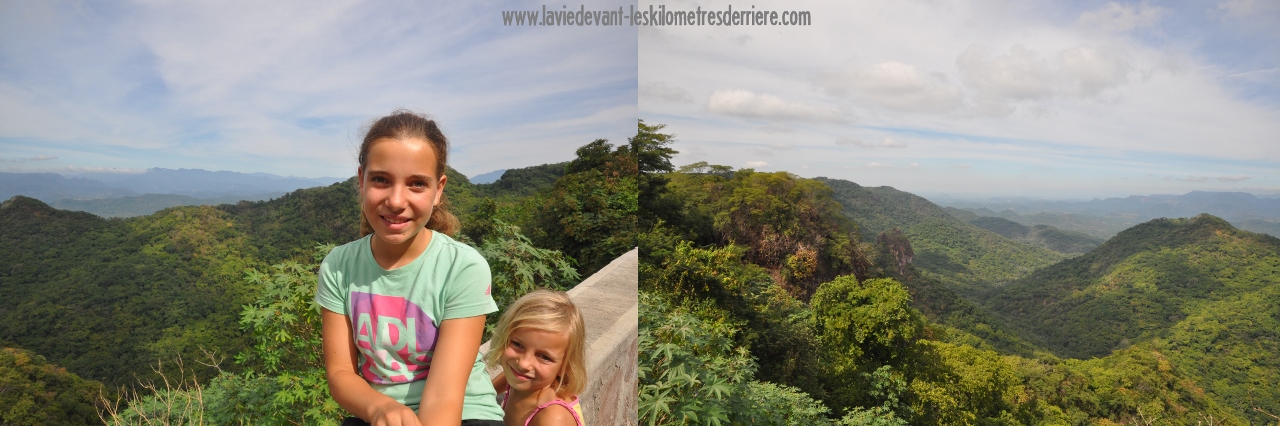 Pourtant, nous avons toujours de la peine à trouver notre rythme mexicain. Peut-être cherchons-nous trop l’endroit parfait. Peut-être que nous avons trop la bougeotte ! Toutefois, pas vraiment convaincu de l’endroit, nous sommes repartis le lendemain matin, lundi, pour Santa Maria Del Oro. Comme Claire a repris le volant de Rhino ici au Mexique (n’ayant pas d’assurance aux USA, j’étais le seul à conduire), j’en profite parfois pour donner l’école aux enfants pendant les trajets, ce qui nous permet de gagner un temps fou ! Aussi, cela me permet de mieux voir les paysages. Il faut dire que ceux-ci ont beaucoup changé en quittant Baja. Nous revoyons une flore luxuriante, variée, et d’un vert que nous n’avions plus vu depuis des mois. Les bords de mers sont remplis de palmier, entre autre, et la montagne offre encore beaucoup d’arbres fleuris et du vert à perte de vue.
