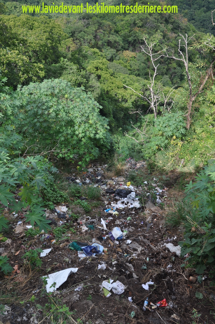L’envers du décor se trouve souvent à nos pieds. Le Mexique contient encore beaucoup de décharges sauvages en bord de route. En voici l’exemple au pied d’où nous pris la photo précédente.