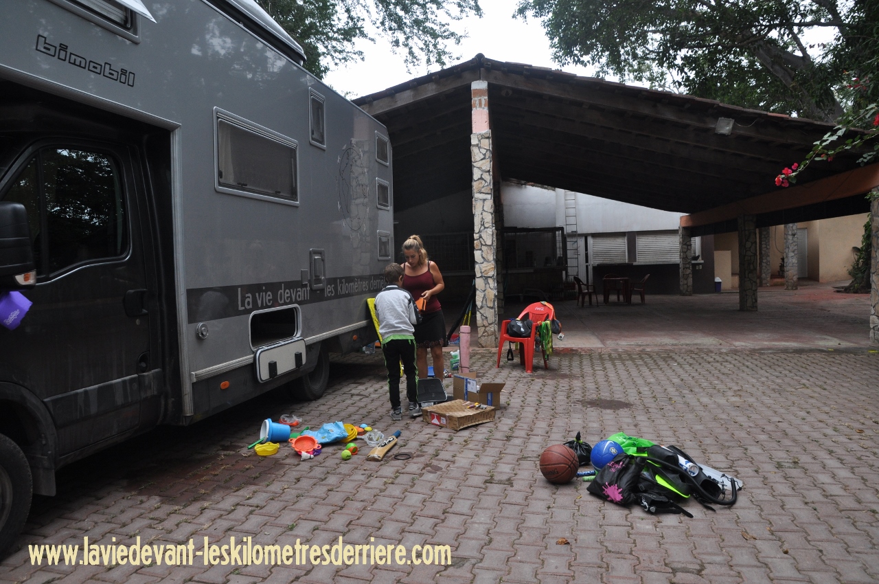 Et ainsi, nous avons refait cela le mercredi matin. Pour la récréation des enfants, nous sommes restés sur cette place et avons beaucoup joué et rit. Nous sommes restés à cet endroit car, en plus d’y être bien, nous avions rendez-vous avec la famille Roux. Eux, ne se sont plus établis en France depuis 7ans. Ils ont fait une pause de 1an aux Seychelles mais sont repartis sur la route il y a quelques temps. Et que cette rencontre est tombée au bon moment. Vous l’avez peut-être ressenti dans les derniers articles, mais dans tous cas nous étions dans une période de doute et de remise en question. Nous venons de passer le premier creux de ce voyage.