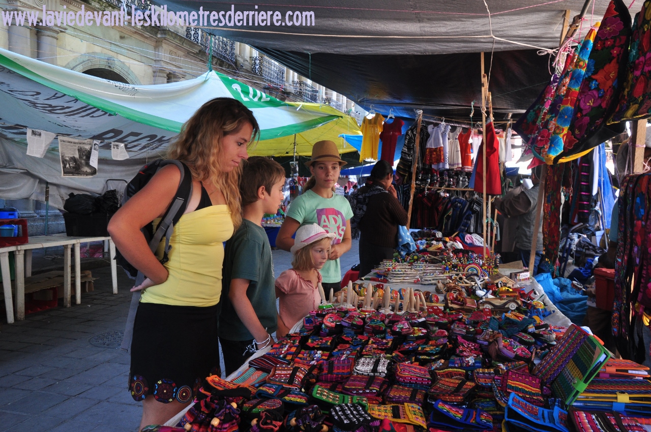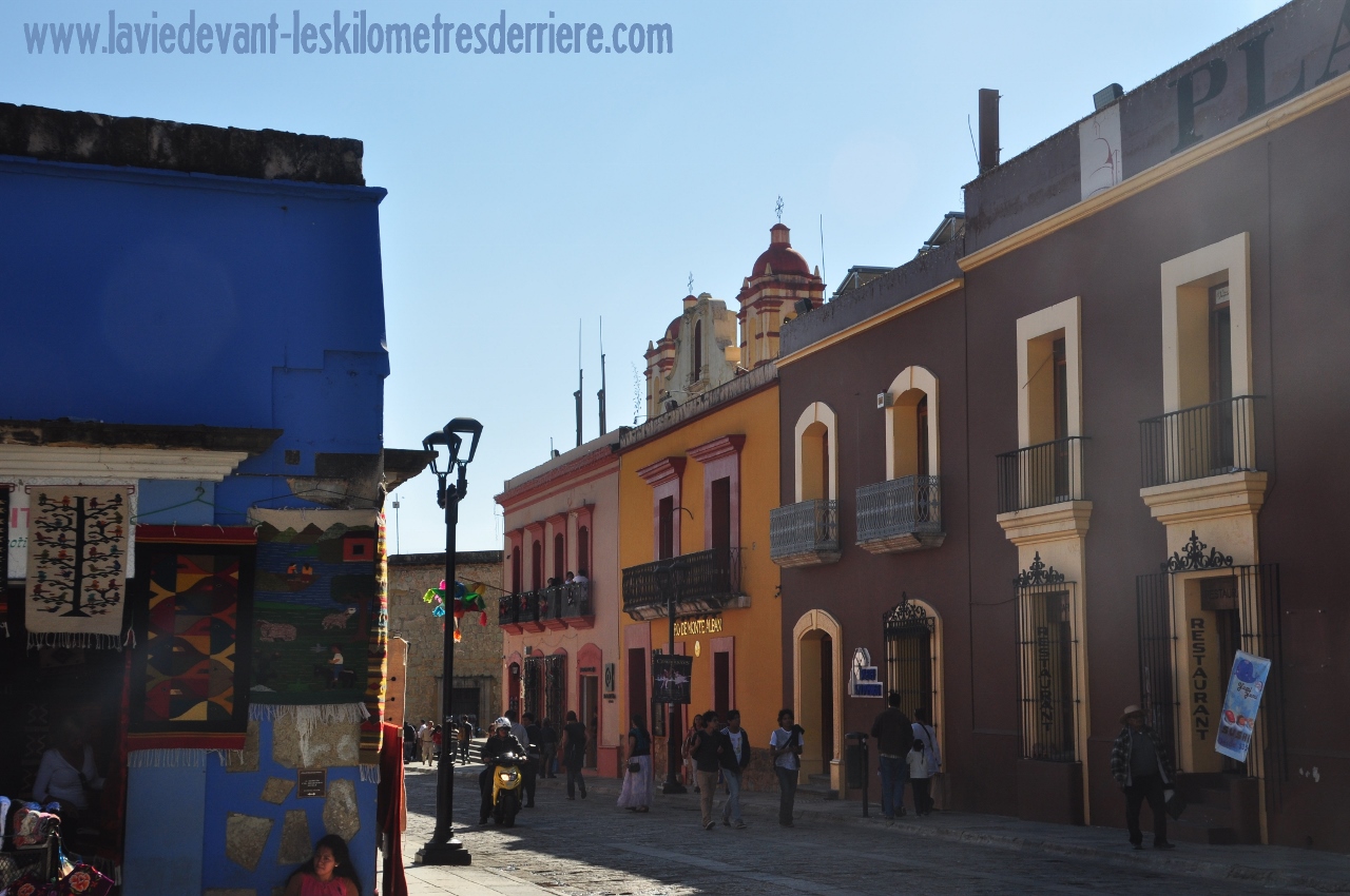 Jeudi, nous sommes allés à la visite de cette ville. Nous avons déambulé dans ses rues piétonnes, dans ses marchés en plein air, dans son musée des cultures (à ne pas manquer si vous passez par-là) et son église Santo Domingo. Encore une ville coloniale pleine de couleurs (dans son centre historique en tous cas) et forte agréable pour s’y promener. Nous avons constaté, dans les marchés et nos achats, qu’il est très compliqué de discuter un prix. Nous savons pertinemment que les prix proposés sont largement trop haut, mais ils refusent systématiquement la discussion, à une fréquence de 9 fois sur 10 ! Certains sont même franchement désagréables. Cela étant, le reste de la ville et des activités sont réellement plaisantes. Les deux choses que nous aurons préféré auront été de déambuler dans les rues piétonnes et l’exposition des vestiges du tombeau 7 de Monte Alban dans le musée des cultures.