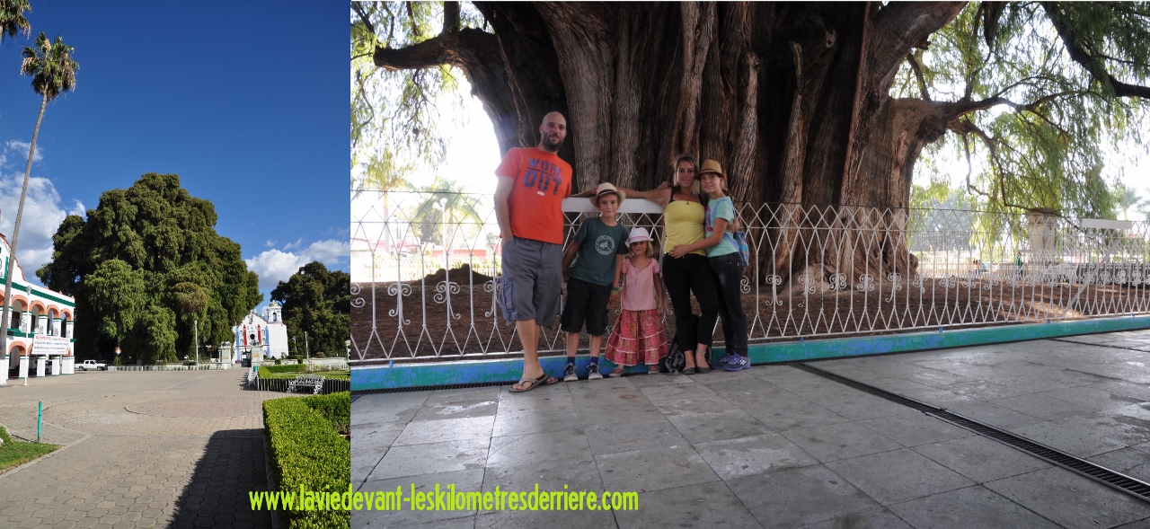 Nous avons terminé cette journée par la visite de l’arbre de Tule, qui serait l’arbre avec la plus grande circonférence au monde, 52m. Il est vrai que sa base est impressionnante. Nous avons bivouaqué à 50m de là, sur conseil du policier qui nous a dit que cet endroit était calme et en sécurité. Il aura sans doute oublié que le clocher fait des mélodies à 6h du matin et que des gros pétards explosent à 7h pour annoncer la messe ! Nous nous serons réveillé en fou rire avec Claire tant la situation paraissait loufoque…