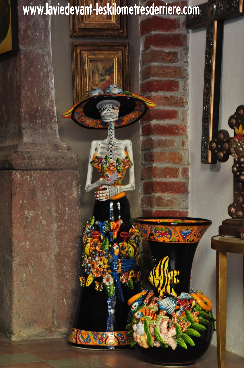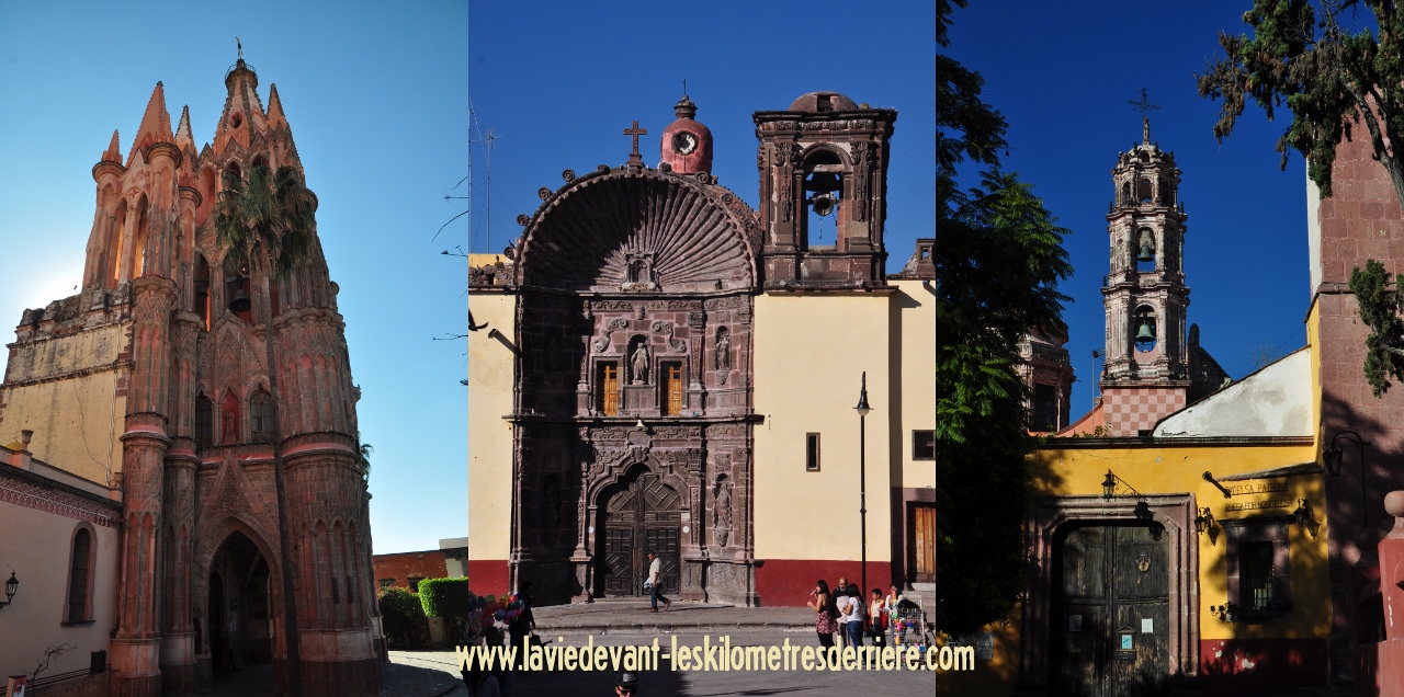 Nous avons rejoints San Miguel vers 13h. Nous en avons profité pour faire la visite de notre deuxième ville coloniale. Construite dans les mêmes temps que Guanajuato, San Miguel était un lieu de transit des marchandises venant des environs. Elle est devenue un lieu privilégié des américains, venant ici en vacances et s’établissant pour leurs vieux jours. Ils seraient 10’000 sur les 100’000 habitants de cette ville.