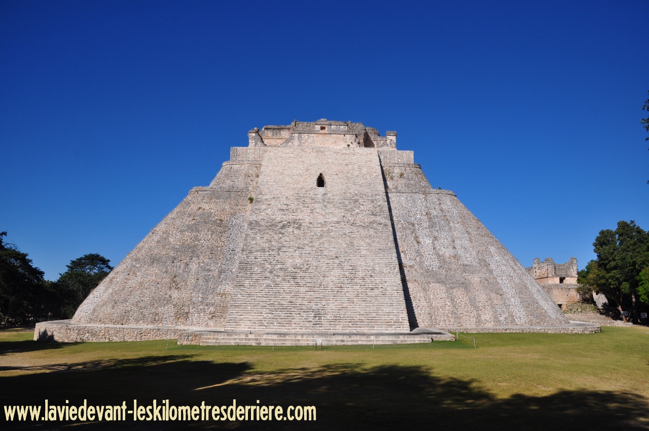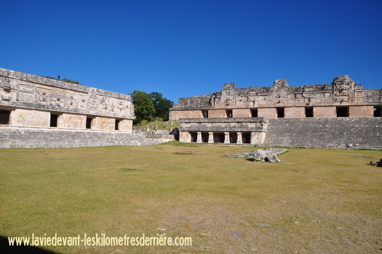 Mercredi, nous sommes arrivés à Uxmal (à prononcer Uchmal) en début d’après-midi, toujours avec les Joly-Camper. Ce moment étant relativement mal choisi pour faire la visite du site, car trop de touristes présents, nous cherchons directement un bivouac. Le choix le plus logique s’offrant à nous était le parking 2 du site archéologique. 130Pesos pour la nuit, il n’offrait rien de plus qu’un bout de pelouse. Nous avons demandé à l’hôtel juste à côté s’ils avaient un lieu pour stationner et ainsi profiter de la piscine. Tout d’abord, le réceptionniste répond par la négative. Claire et Stéphane décident alors de partir à la recherche d’une place alentour. En revenant, Claire part discuter à nouveau avec l’employé de l’hôtel et insiste pour qu’il demande au manager. Au final, Claire aura obtenu que nous puissions stationner à l’arrière du complexe, gratuitement, avec accès à la piscine contre une consommation au bar. Nous avons, dès lors, profité de notre après-midi piscine avec wi-fi !