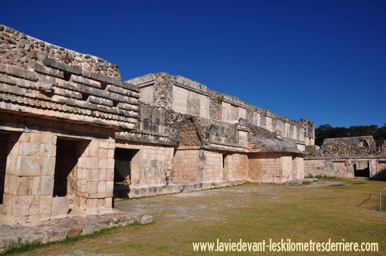 Jeudi matin, donc, nous sommes partis à la visite de notre premier site Maya. Nous aurons pris un guide que nous aurons payé 300Pesos pour nos deux familles, ce qui est plutôt économique. Ce site est franchement extraordinaire ! La qualité des frises, des sculptures, l’acoustique, l’architecture…. Tout y est surprenant et vous donne la possibilité de prendre toute la mesure du développement des connaissances Maya. Par vous-mêmes, à moins d’être spécialisé dans la culture Maya, il sera difficile de bien tout comprendre. La subtilité des frises, sculptures et autres phénomène architecturaux (résonnance des voix, retours de son, etc.) vous sont conté par le guide et deviennent vivant ! Et lorsque ce même guide se met à chanter des chansons mayas, cela devient magique, une visite qui restera une référence pour nous !