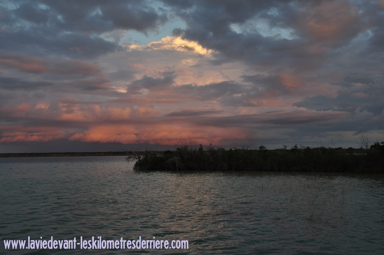 Donc, dimanche matin, nous sommes partis pour Xcacel, sanctuaire de tortue. Malheureusement, la mer était très agitée et impraticable. Nous avons roulé un peu et occupé notre journée en faisant des courses, à Tulum. Le soir, nous devions retrouver, normalement, la famille Joly sur Akumal. Mais le hasard à voulu que se soit avant, justement au Chedraui (centre commercial) de Tulum. Nous avions voulu les revoir avant de partir sur la laguna Bacalar et Calakmul, puis le Belize, car nous avions passé de bons instants en leur compagnie avant l’arrivée de la famille pour les fêtes. Ce soir-là, c’est à trois véhicules que nous nous sommes retrouvés. Malo, et sa co-voyageuse Yasmine, sont un couple d’amis qui voyagent ensemble jusqu’en AmSud jusqu’en Avril. Ils ont partagés, eux-aussi, quelques jours avec les Joly. Et après consultation des programmes de chacun, nous avons décidé que le lendemain nous prendrions la route dans la même direction et que nous nous retrouverions à la laguna Bacalar.