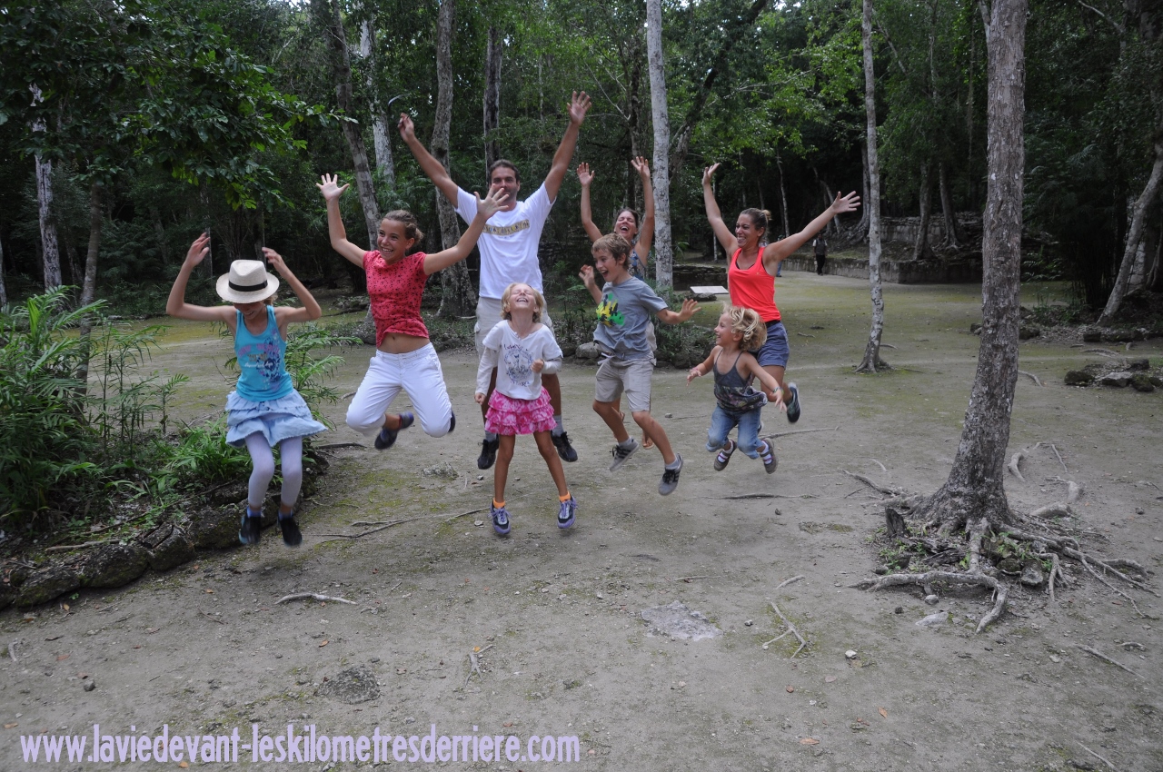 Et mercredi, c’était départ pour Calakmul. Nous avons écourté le passage à la Lagune car je ne pouvais pas me baigner à cause de l’infection au tibia. Nous devons, de toute manière, repasser tout proche pour nous rendre au Bélize. C’est donc là que nous avons dit au revoir à Malo et Yasmine qui eux doivent avancer vite pour rejoindre l’AmSud en 3 mois.