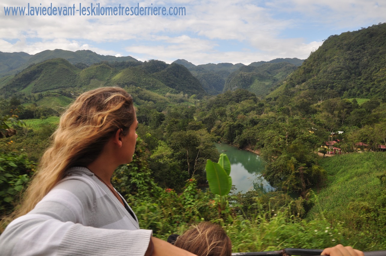 Assez rapidement, nous avons été mis au diapason des routes guatémaltèques. Plus rien à voir avec les autres pays traversés. Si le Mexique était énervant pour ses topes (sorte de gendarmes couchés mais abrupte au possible), le Guatemala, lui, est franchement défoncé au niveau de ses routes dès que vous sortez de LA route principale qui vous fait un détour de 150km pour mais gagner 4h de route pour une distance de 300km.