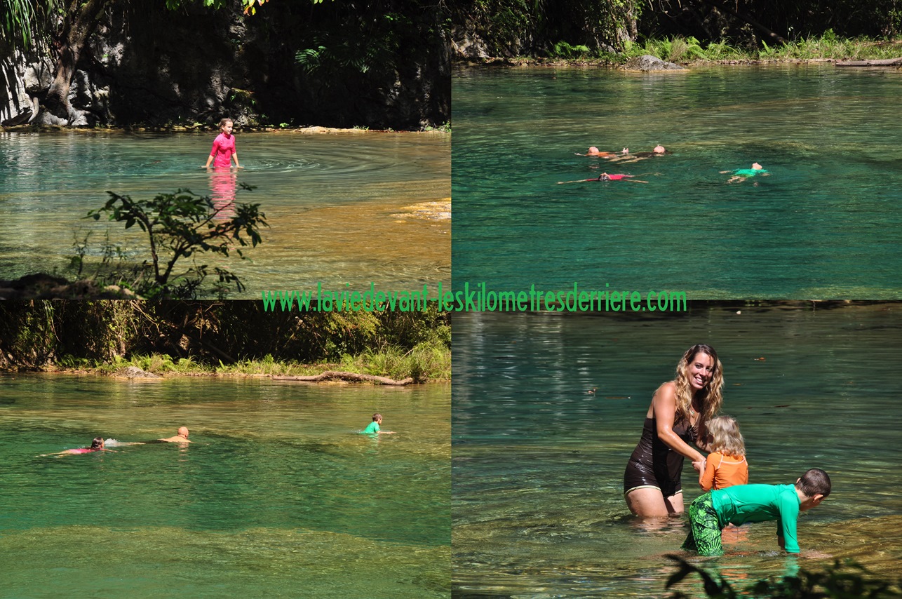 A la sortie des grottes, se trouve la rivière Lanquin. Nous y avons passé un peu de temps pour les 4h (gouter de l’après-midi en Suisse).