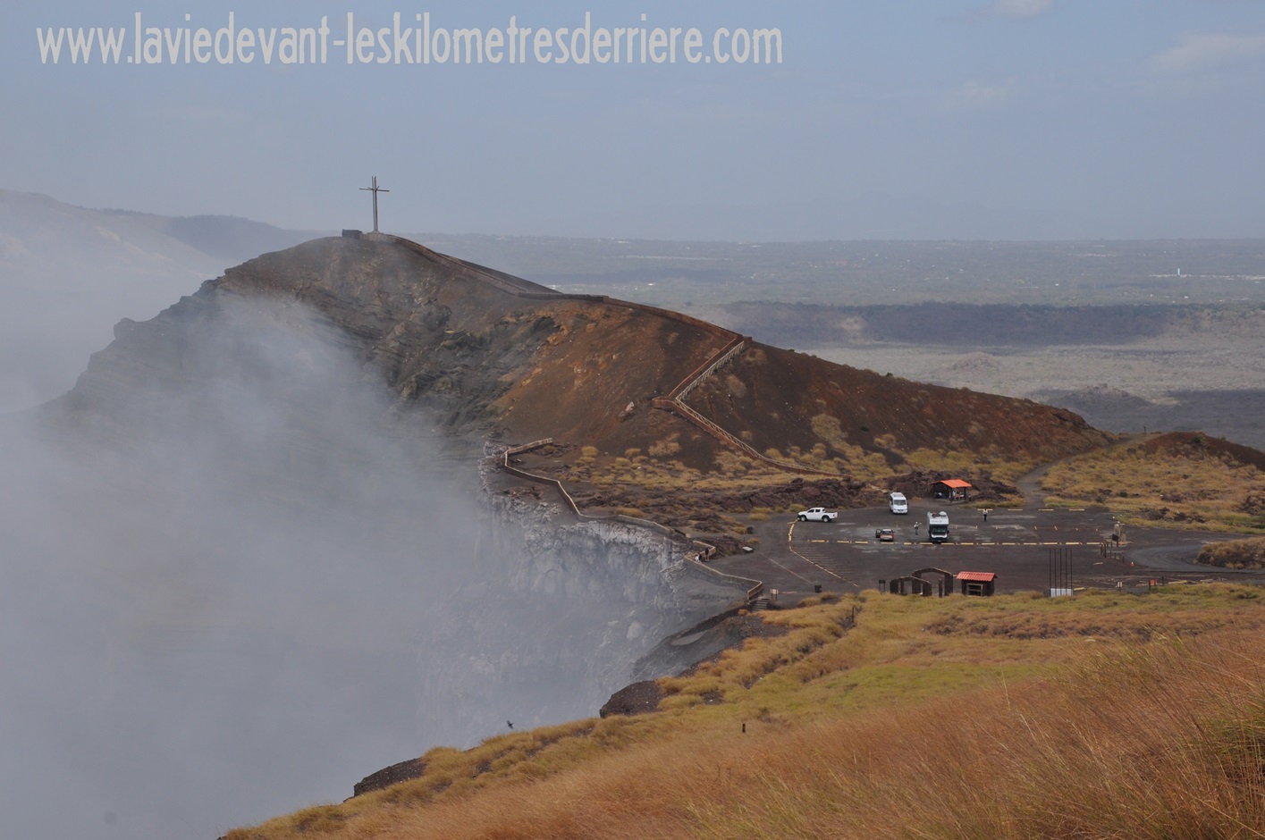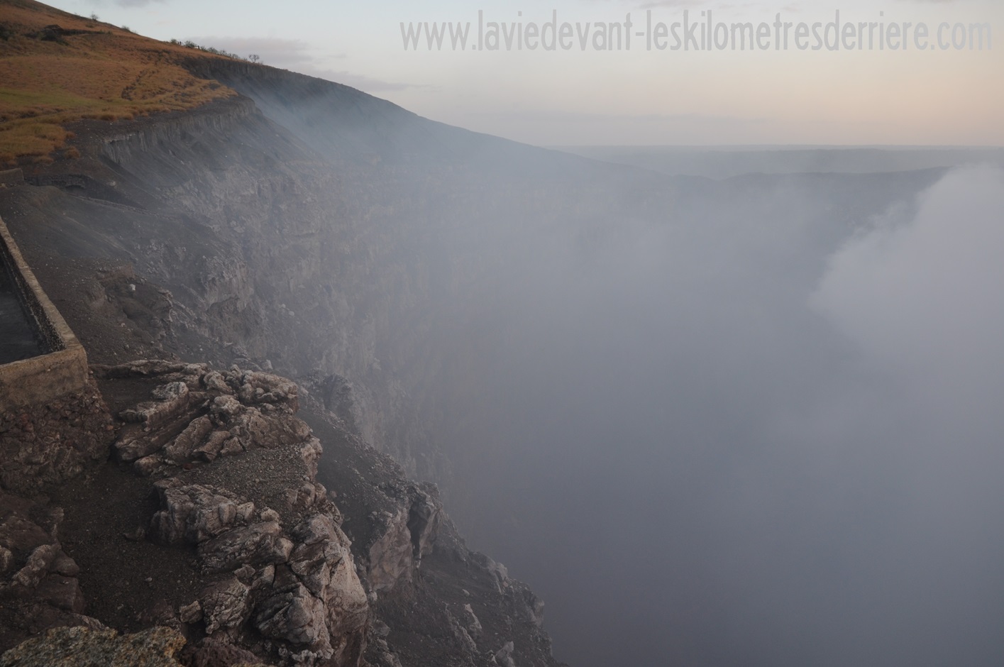 Mardi, nous avons retrouvé une ambiance toute autre, comme nous l’aimons tant ! Nous avons pris la route du parc national du Volcan Masaya. Quelle belle découverte ! Nous y sommes à l’écart des villes, de la saleté, des locaux qui vous sautent dessus pour vous vendre quelque chose. Nous avons fait un tout petit tour aux abords du volcan Masaya et du cratère Santiago, encore actif et crachant tous les 3 à 4 ans, avant de redescendre au musée pour y passer la nuit dans un calme que nous n’avions plus eu depuis longtemps, sans autres personnes autour de nous !