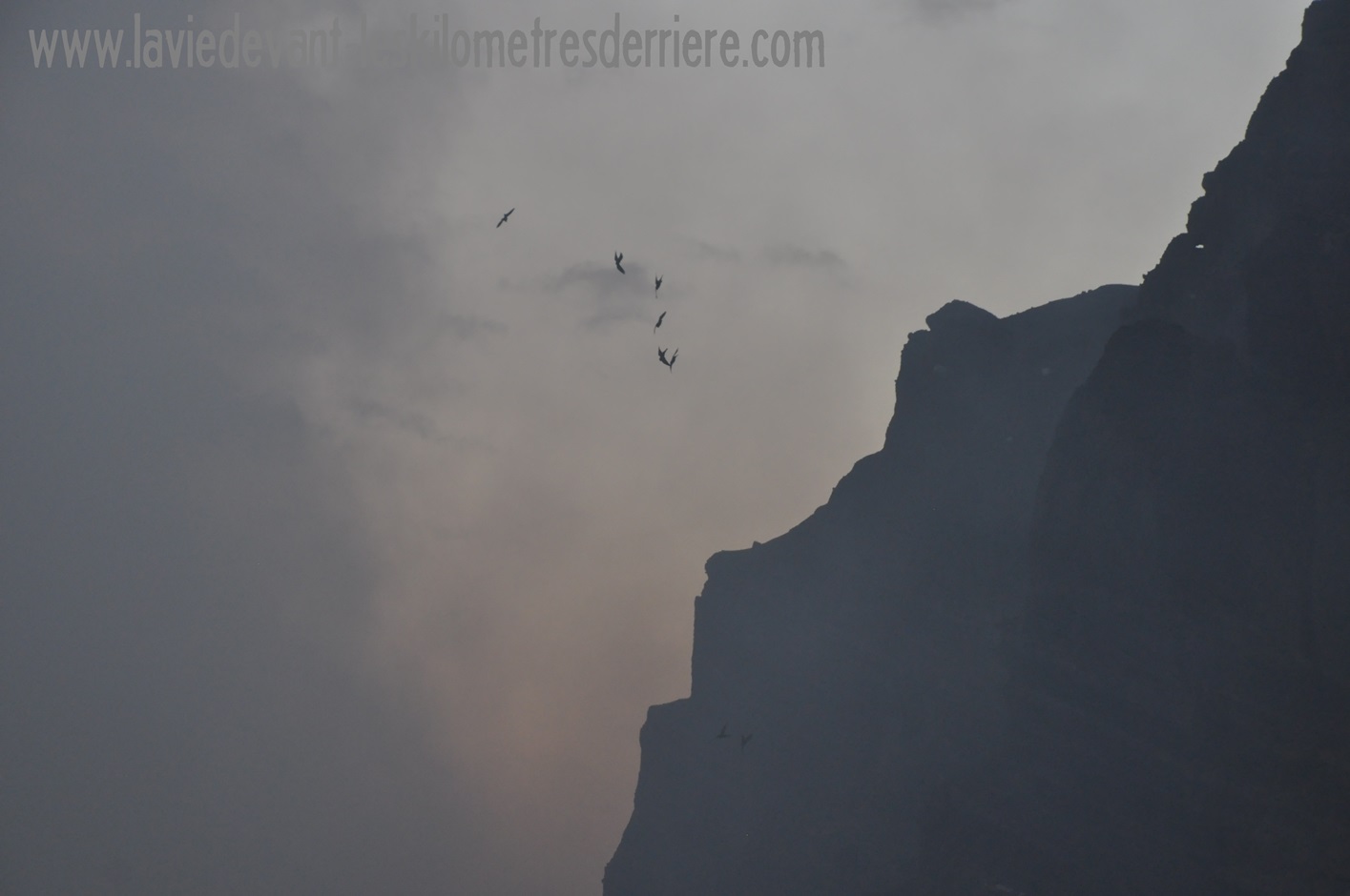 Nous avons également prolongé (avec accord des gardiens du parc) notre visite jusqu’à 18h (normalement 17h) afin de voir rentrer les colonies de perroquets verts venant nicher la nuit dans les cavités du volcan, à l’abri des prédateurs malgré la nocivité des gaz.