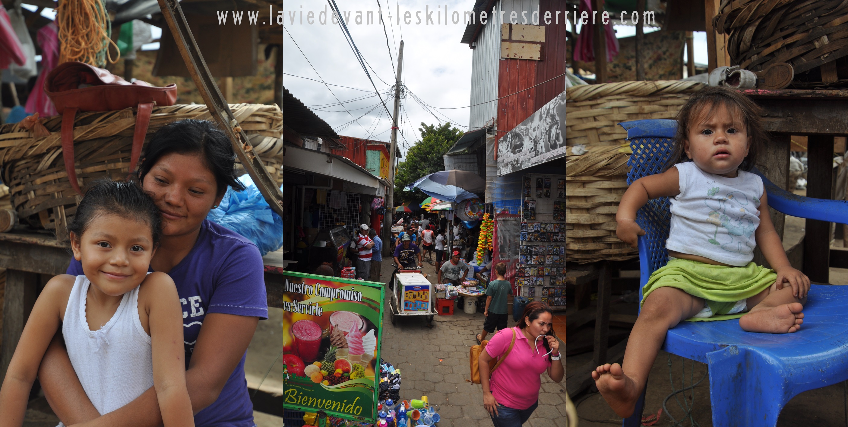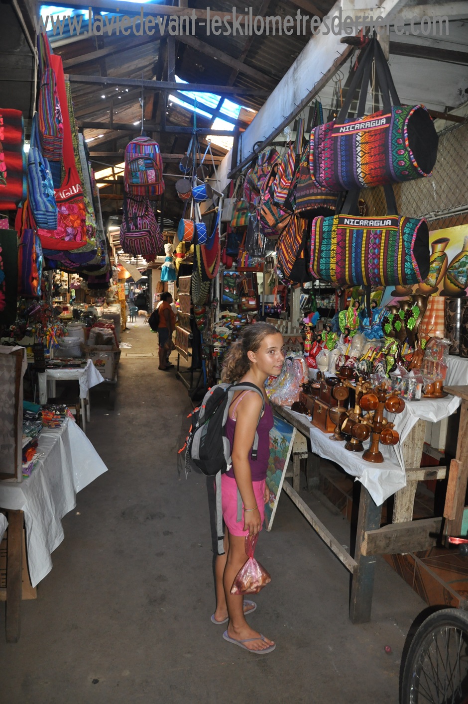 En comparaison, nous avons adoré le marché local de Masaya. Je dis bien le marché local car il y en a deux. Il y a celui que nous pensions faire, qui est décrit dans tous les bouquins, puis celui où les Nicaraguayen vont acheter leurs affaires. Le marché des touristes est surfait, celui des locaux véritable. Nous y avons été accueillis avec d’immenses sourires, une gentillesse touchante et des gens honnêtes. Pour une fois, nous avons payé des prix correct sans avoir à marchander. Nous avons vraiment aimé cet endroit et cette ambiance chaleureuse. Du coup, le marché à touriste, bien que très coloré et propre, est sans gout et faux !