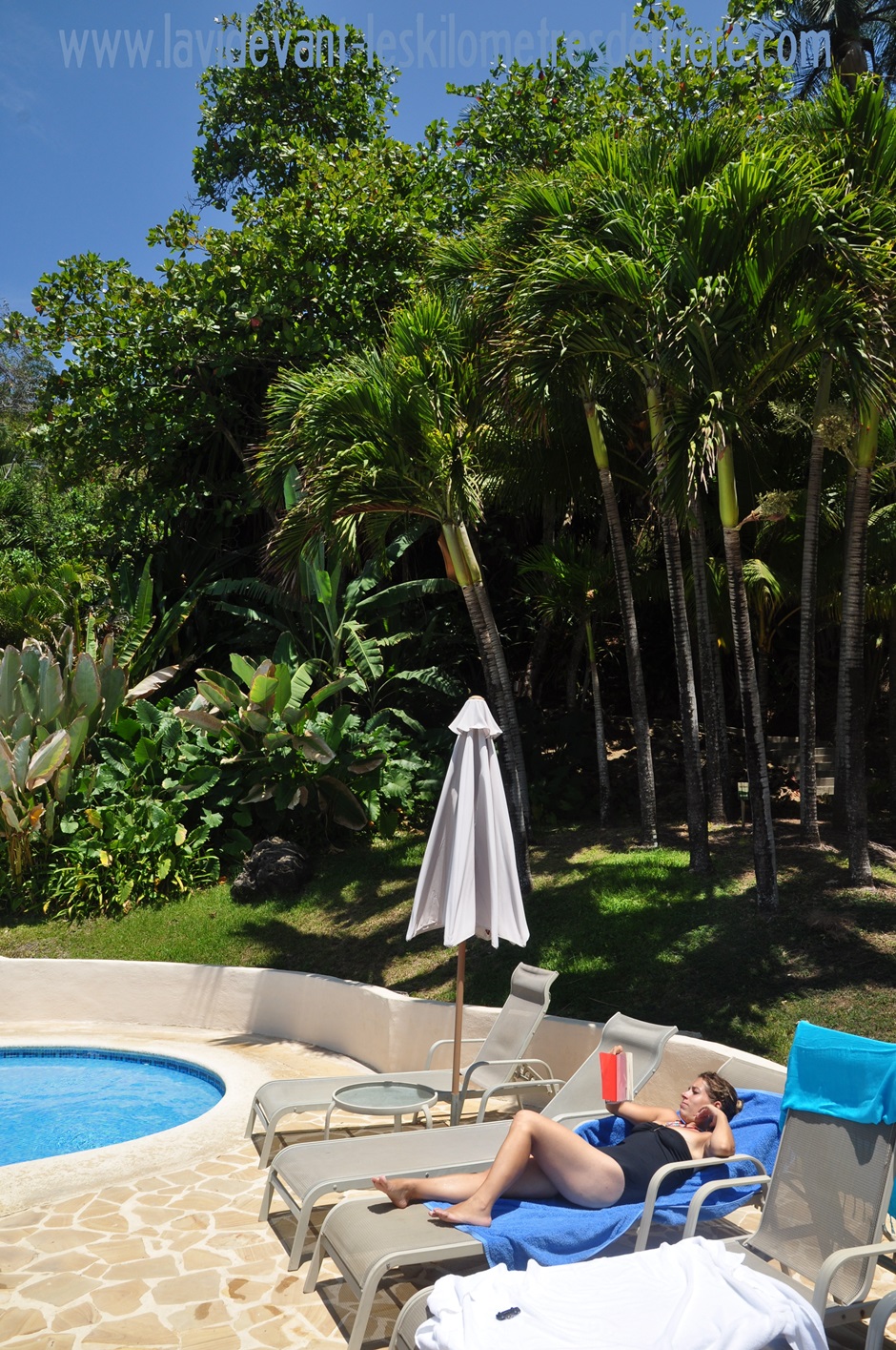 Peut-être aussi que nous n’attendons plus les mêmes choses qu’à nos 20 ans ! Bien que nous écoutions toujours du rap et du reggae, Claire souhaitait quelque chose de plus rangé, de plus confortable pour fêter ses 30 ans, et qu’est-ce que je la comprends. Nous avons donc fait demi-tour pour Tambor et sommes allés à l’hôtel Tango Mar, un brin à l’opposé de l’image souhaitée par Montezuma. Mais pas de doute possible, ce fut 2 jours en hôtel mille étoiles après 8 mois de voyage en camping-car. Une chambre près de 3 fois la surface de notre maison roulante, un lit où l’on doit entamer la traversée tôt le matin avant d’aller réveiller son épouse de l’autre côté !