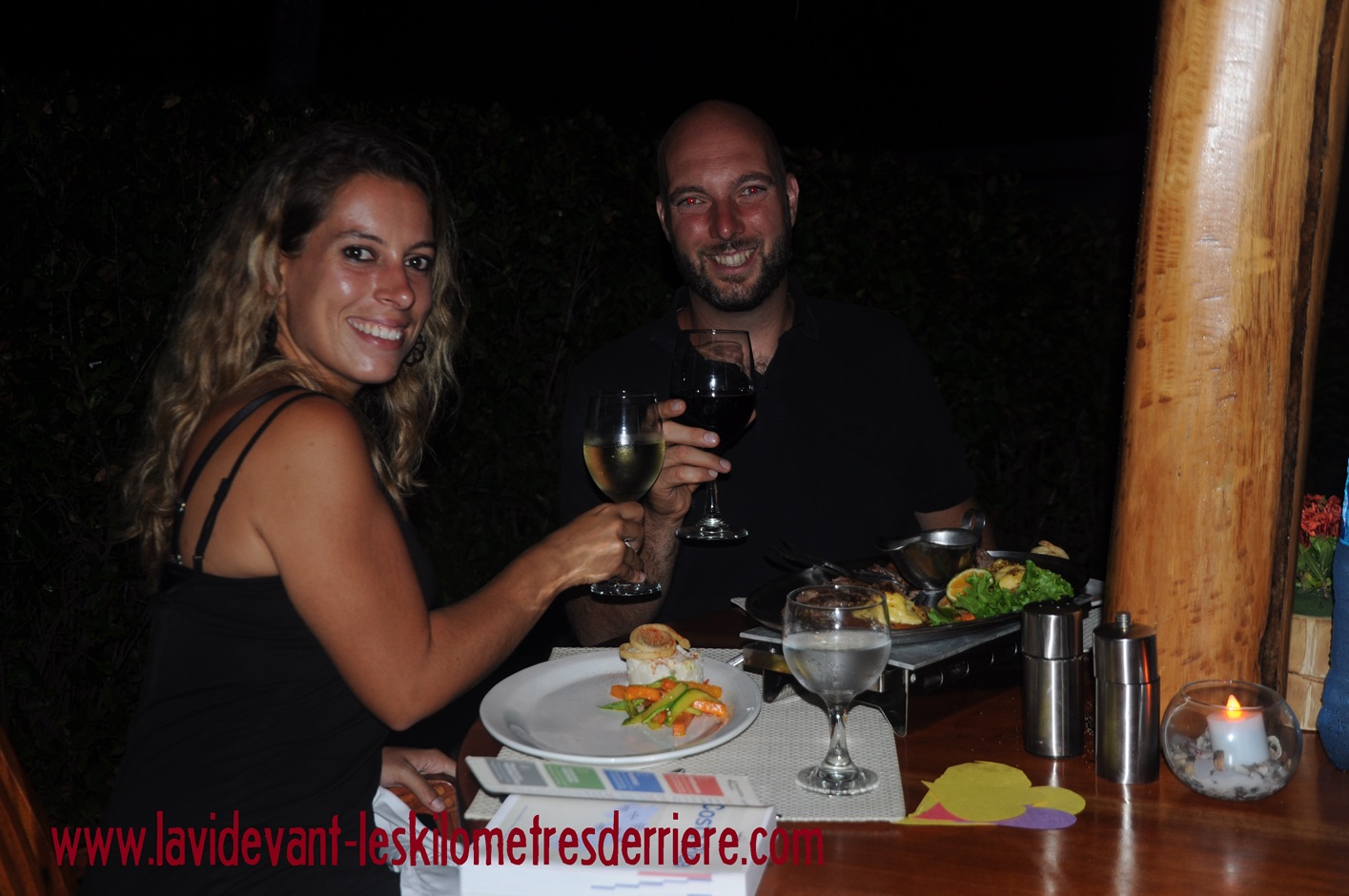 A 18h30, j’ai invité Claire à venir boire un cocktail sans les enfants, restés jouer dans leur chambre. Arrivés au restaurant, je propose que l’on descende vers la table en bord de mer. Arrivés là, nous y découvrons une table avec des couverts. Claire me dit alors : « on ne peut pas s’assoir là, c’est sûrement réservé ». Je fais mine de ne pas m’en faire et je lui dis que l’on partira si quelqu’un arrive.