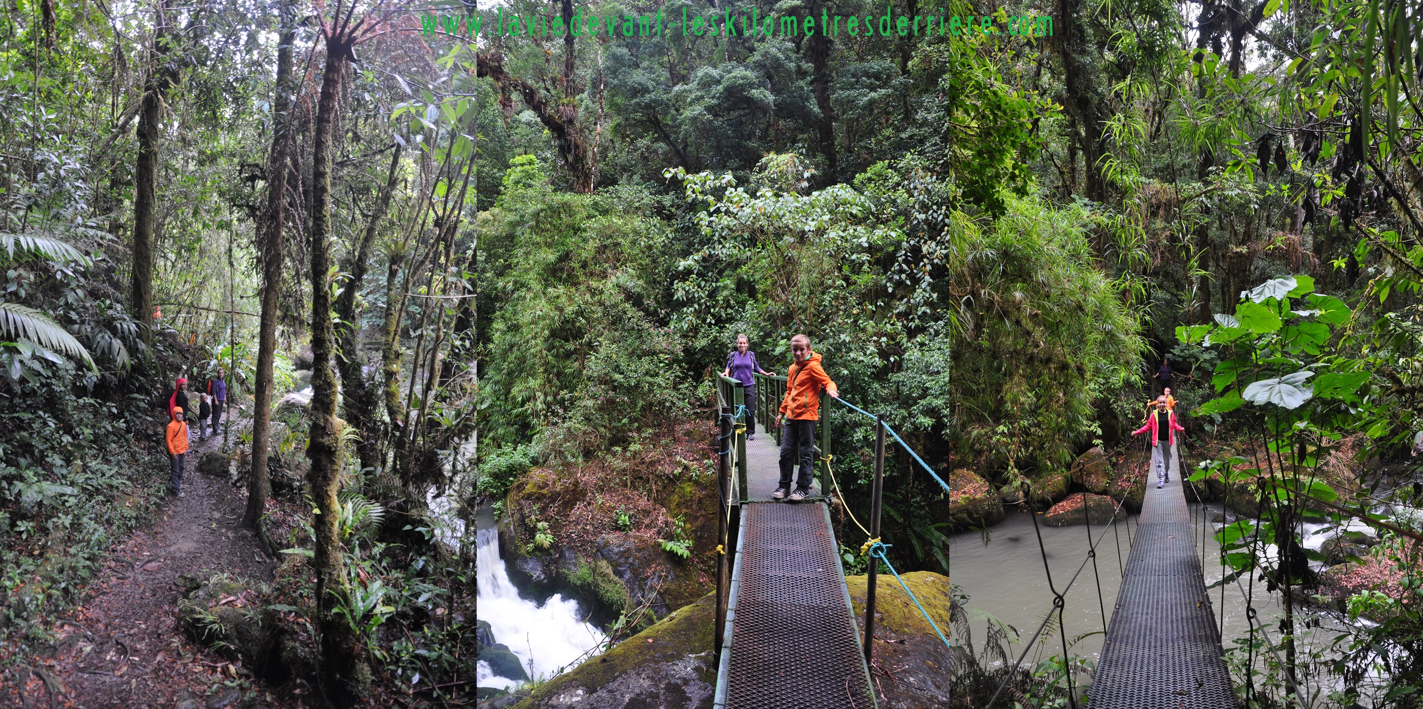 A la plage, il fait chaud, très chaud ! Nous avons donc décidé de remonter quelques jours à la montagne avant l’arrivée de belle-maman. Nous sommes allés jusqu’à San Gerardo de Dota pour essayer d’y voir les Quetzales. La route pour s’y rendre est assez sinueuse, montant terriblement de 0 à 3100m en l’espace de 80 Km. Puis, il faut redescendre sur San Gerardo, à 2000m, en l’espace de 14km. Et ce n’est pas nos belles courbes suisses calculées par des ingénieurs. Ici, lorsque l’on prend la courbe au milieu et non à l’extérieur, l’essieu de propulsion ne touche plus des deux côtés et ça patine un peu !