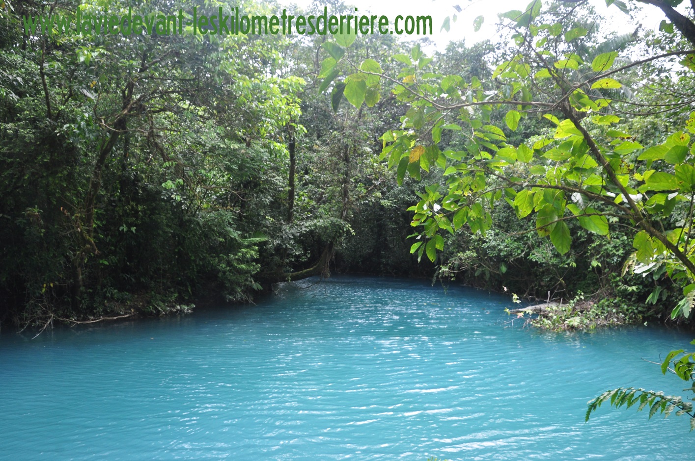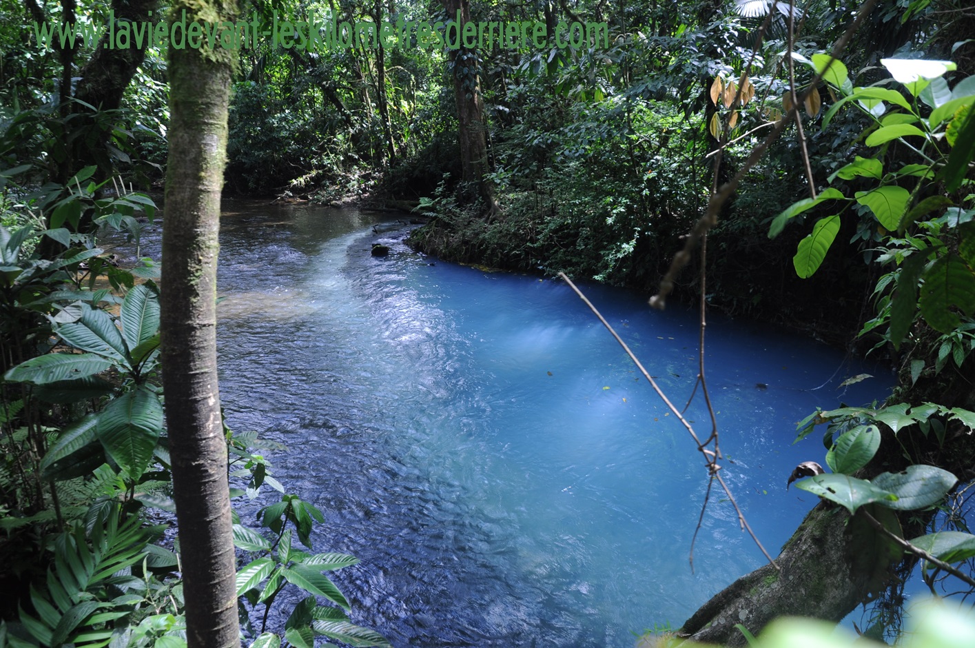 Mais la véritable raison de notre venue ici se nomme Rio Celeste, rivière se trouvant dans le parc du Volcan Tenorio. La légende dit que lorsque Dieu termina de peindre le ciel de son bleu le plus parfait, il nettoya ses pinceaux dans ce Rio, le rendant d’un bleu incroyable ! En réalité, c’est la rencontre de deux Rio d’une eau parfaitement translucide, l’une chargée en minéraux, l’autre en alumine de sulfate, qui en se mélangeant créent une réaction donnant un reflet bleu ciel à l’eau.