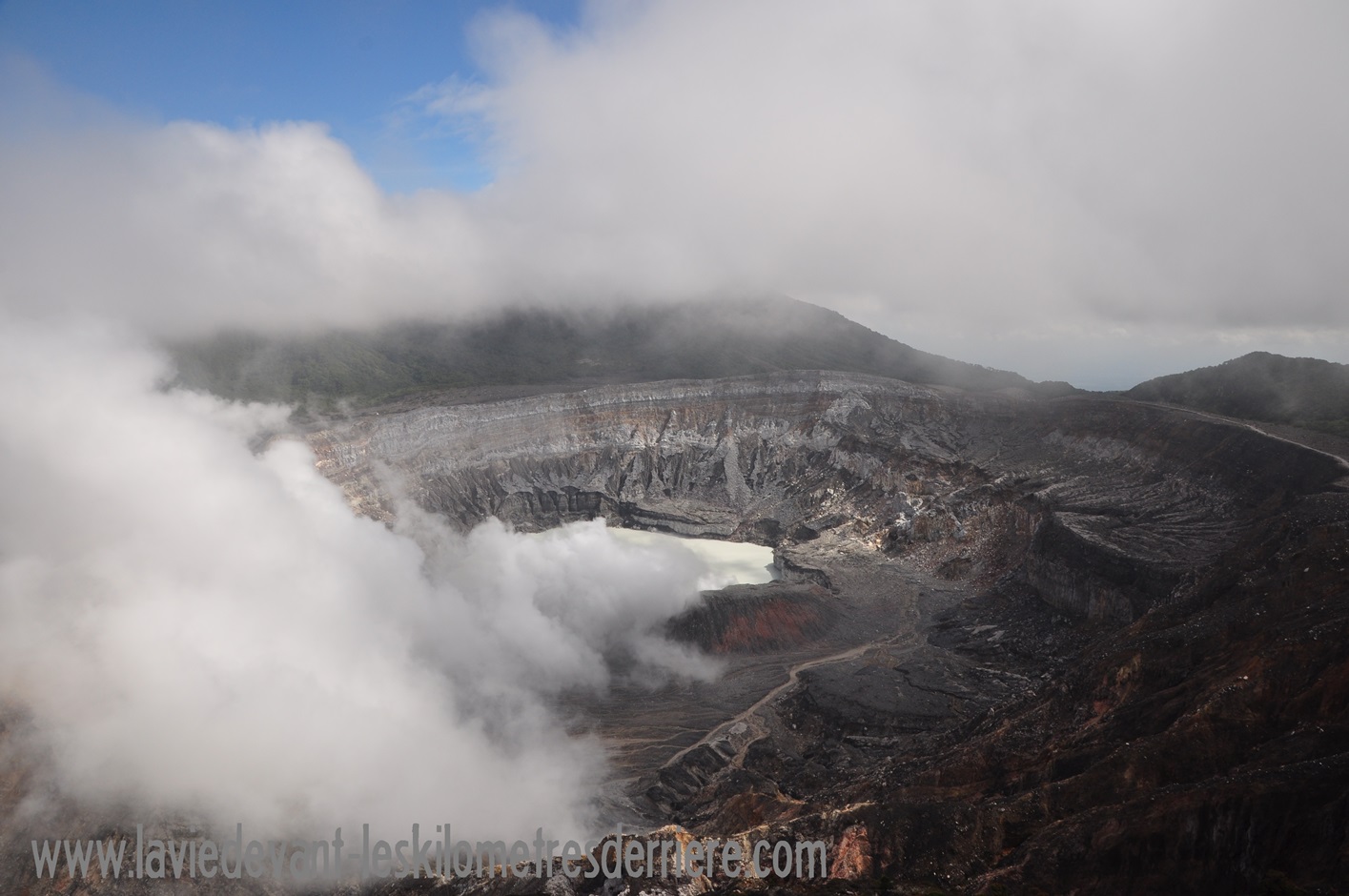 Bref, le volcan Poas est un des parcs le plus visité du Costa Rica et certainement à juste raison car le spectacle offert par le cratère se découvrant de sa brume et laissant apparaitre le lac est une chose à voir. Nous avons été chanceux car la brume faisait des allers-retours sur le cratère en faisant entrer la lumière du soleil au fur et à mesure qu’elle quittait les lieux.