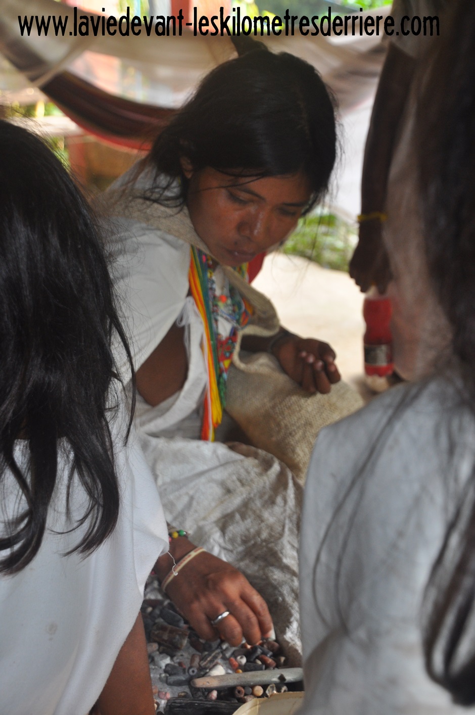 Nous avons également eu la chance de voir un ancien chaman (mamo) de plus de 100ans s’assoir à côté de nous pour échanger sur les façons de vivre et parler du Poporo (ce qu’il a en main), objet réservé aux hommes et contenant les écrits de leur vie, que le chaman peut lire à travers les signes de la pâte blanche séchée (mélange de coquillages broyé avec de la coca). Ce fut un moment fort de cette aventure, qui ce sera passé grâce à José, notre guide, qui lui aura demandé de venir s’assoir vers nous, sentant que nous étions assez respectueux pour l’accueillir dignement.
