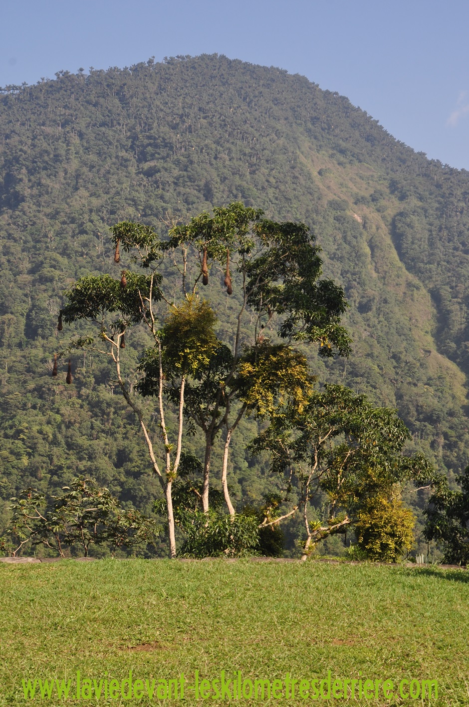 En arrivant en haut de la partie visitée du site, la forêt dense s’ouvre et vous découvrez une vallée faite de forêt composée d’arbre feuillu, mais plus surprenant et ce que nous n’avons pas chez nous, des palmiers trônant fièrement plus haut que tous les autres.