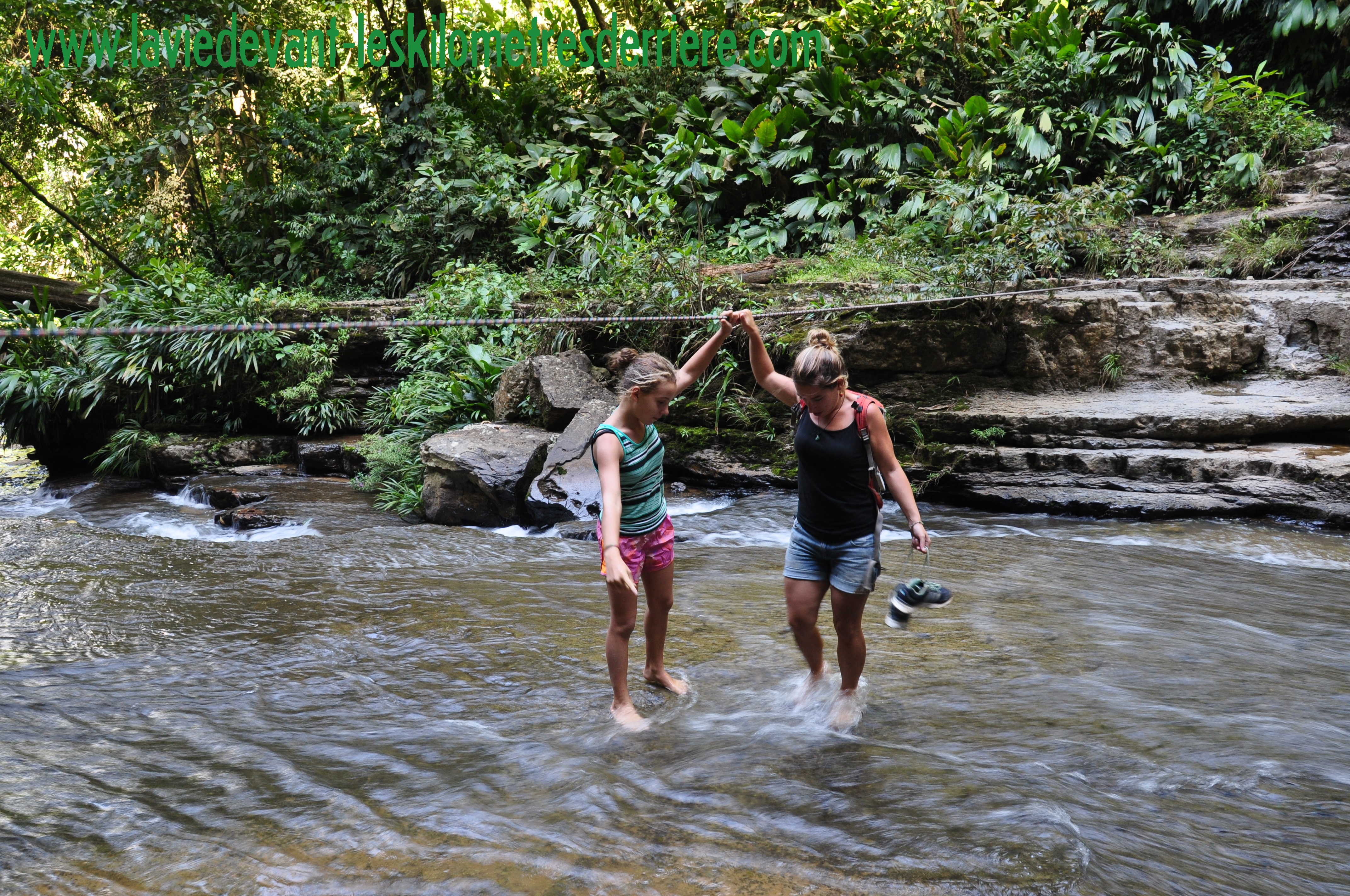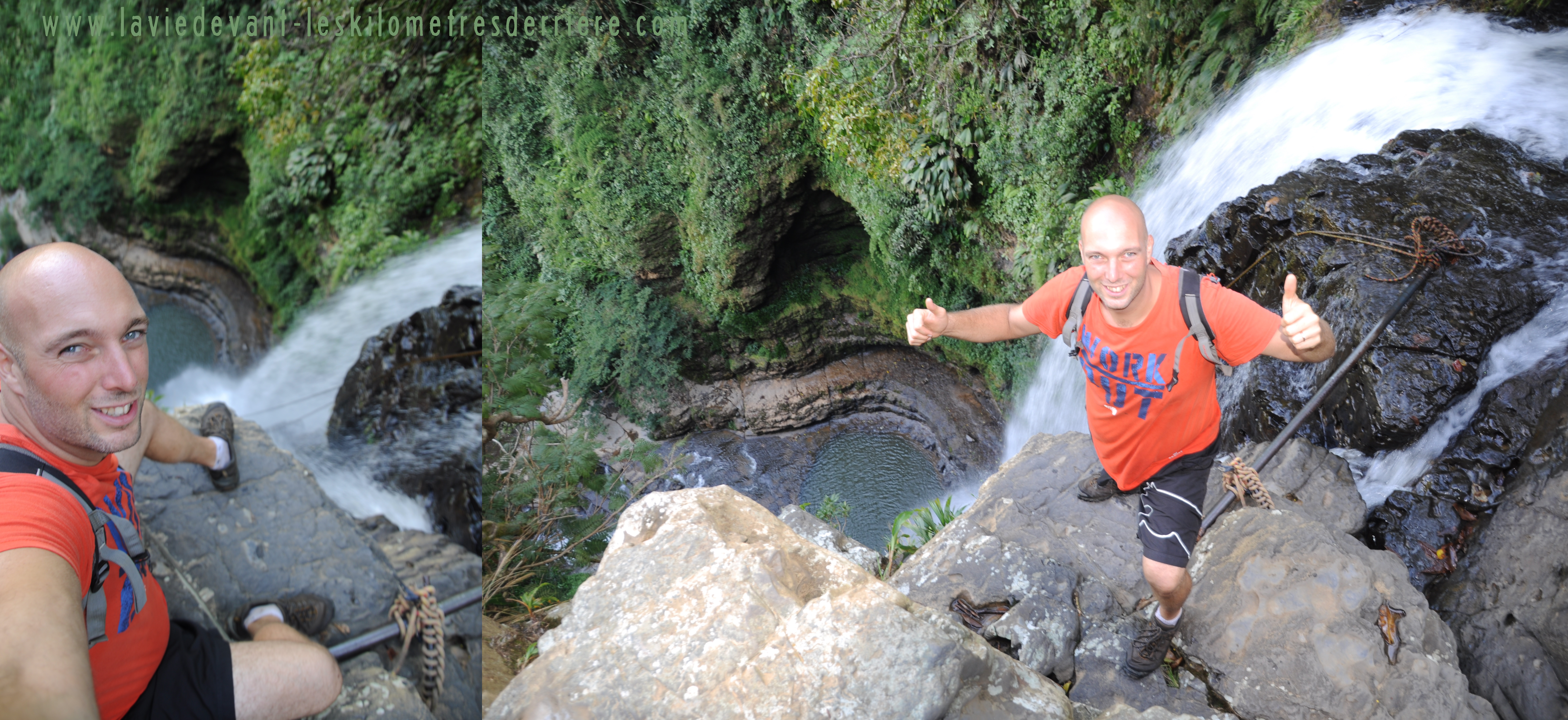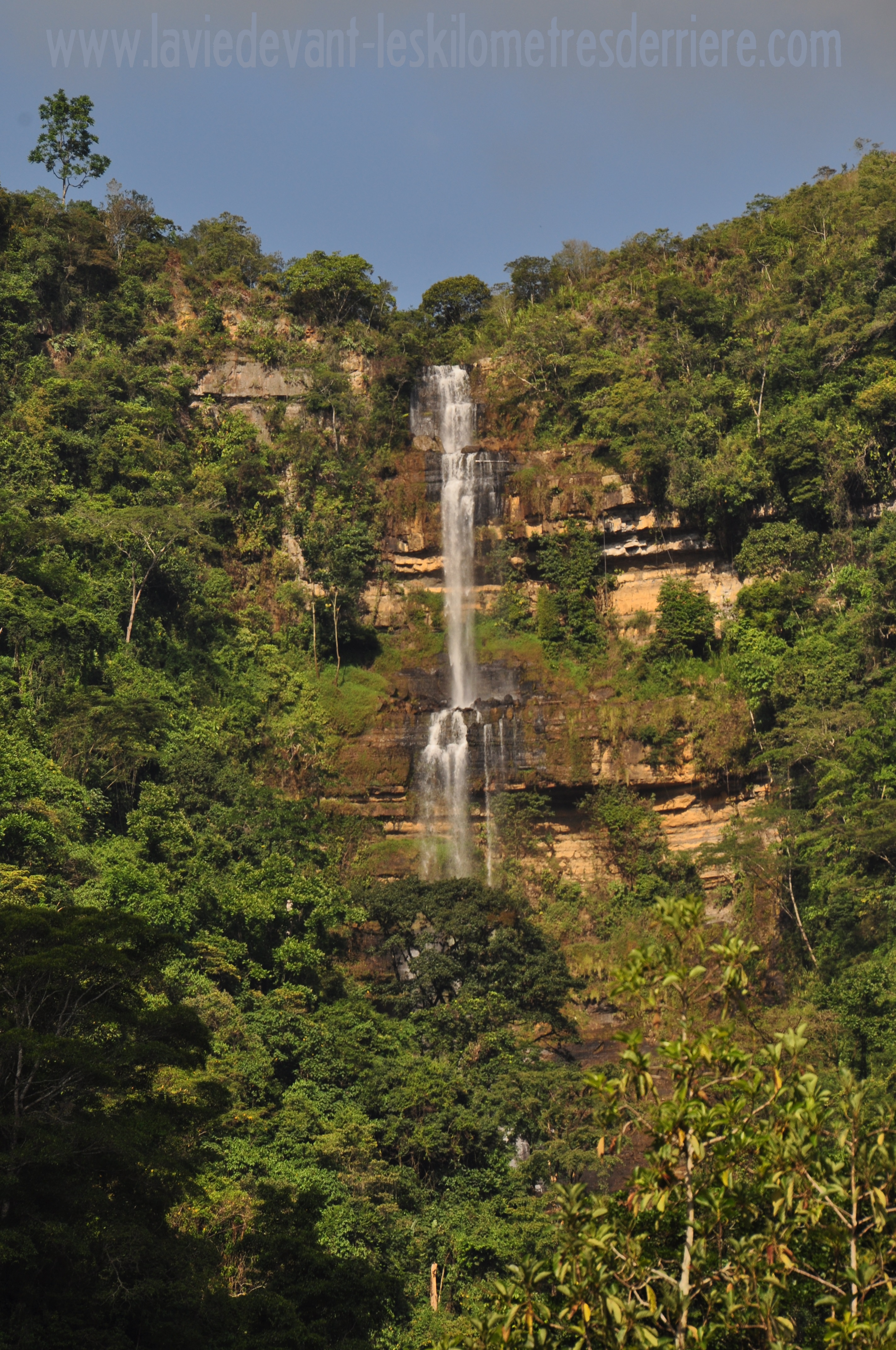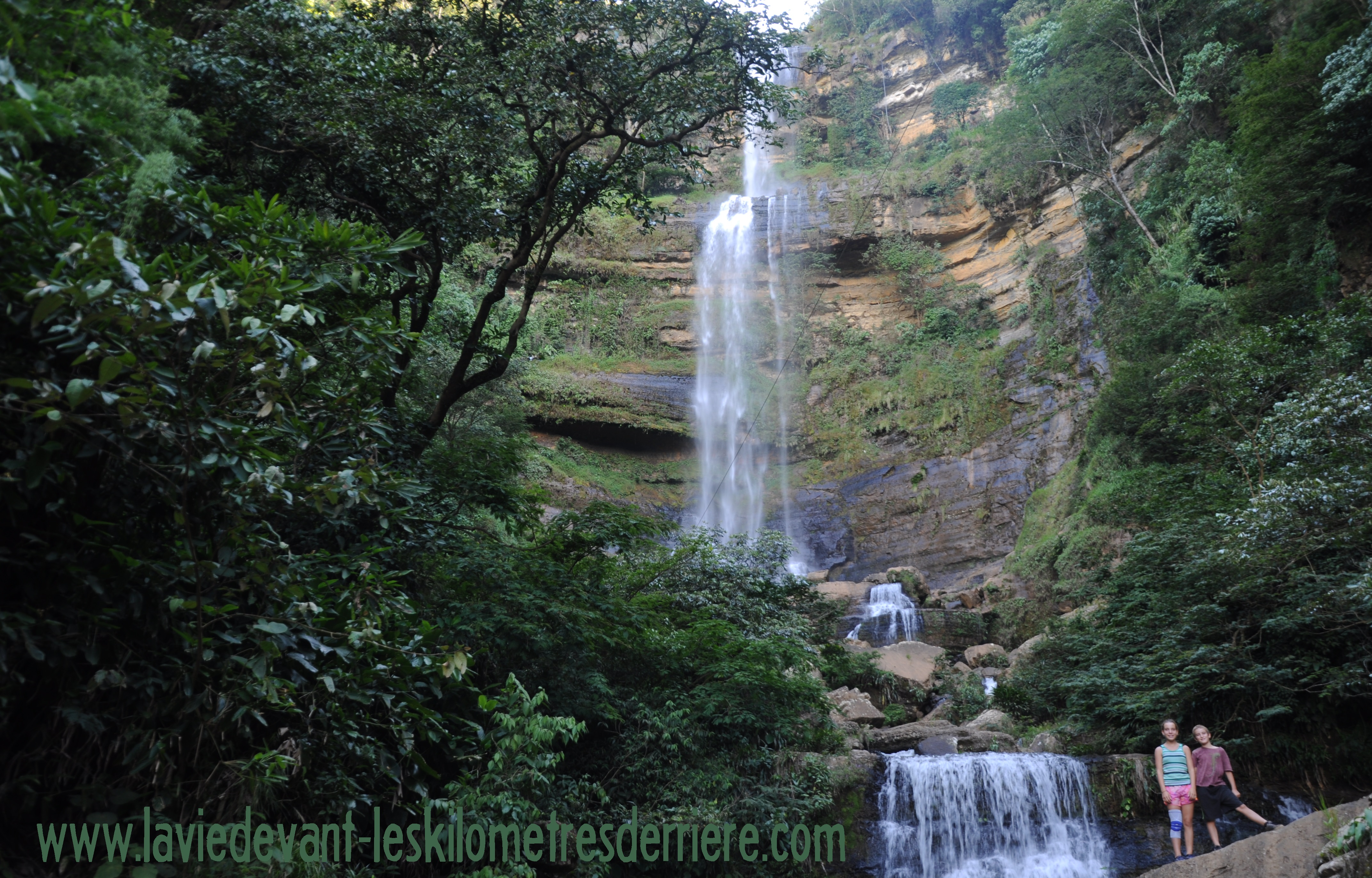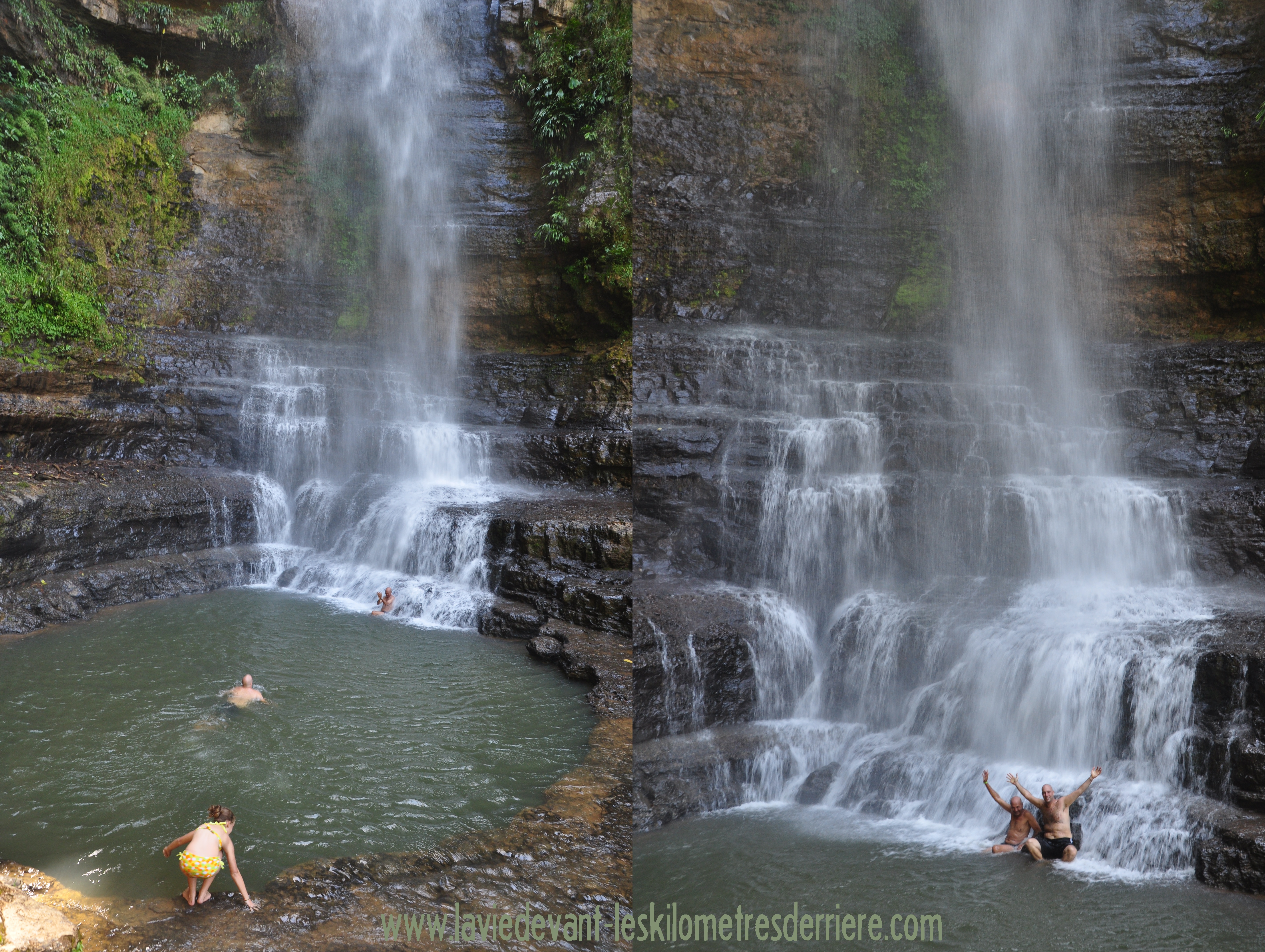 Une fois le chemin fait, nous arrivons à la première chute. Haute de quelques dizaines de mètres, il est possible de se baigner dans son bassin de réception.