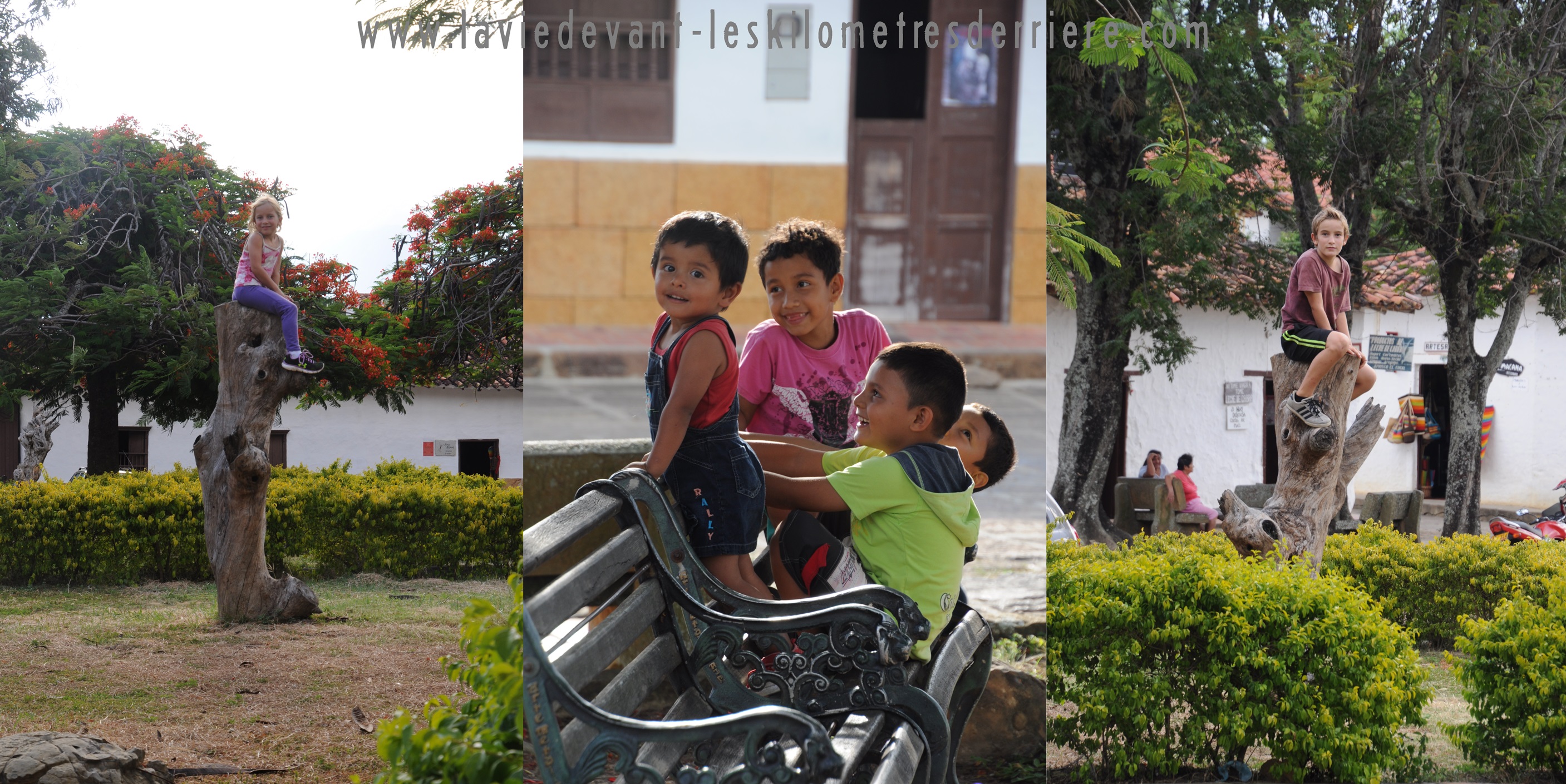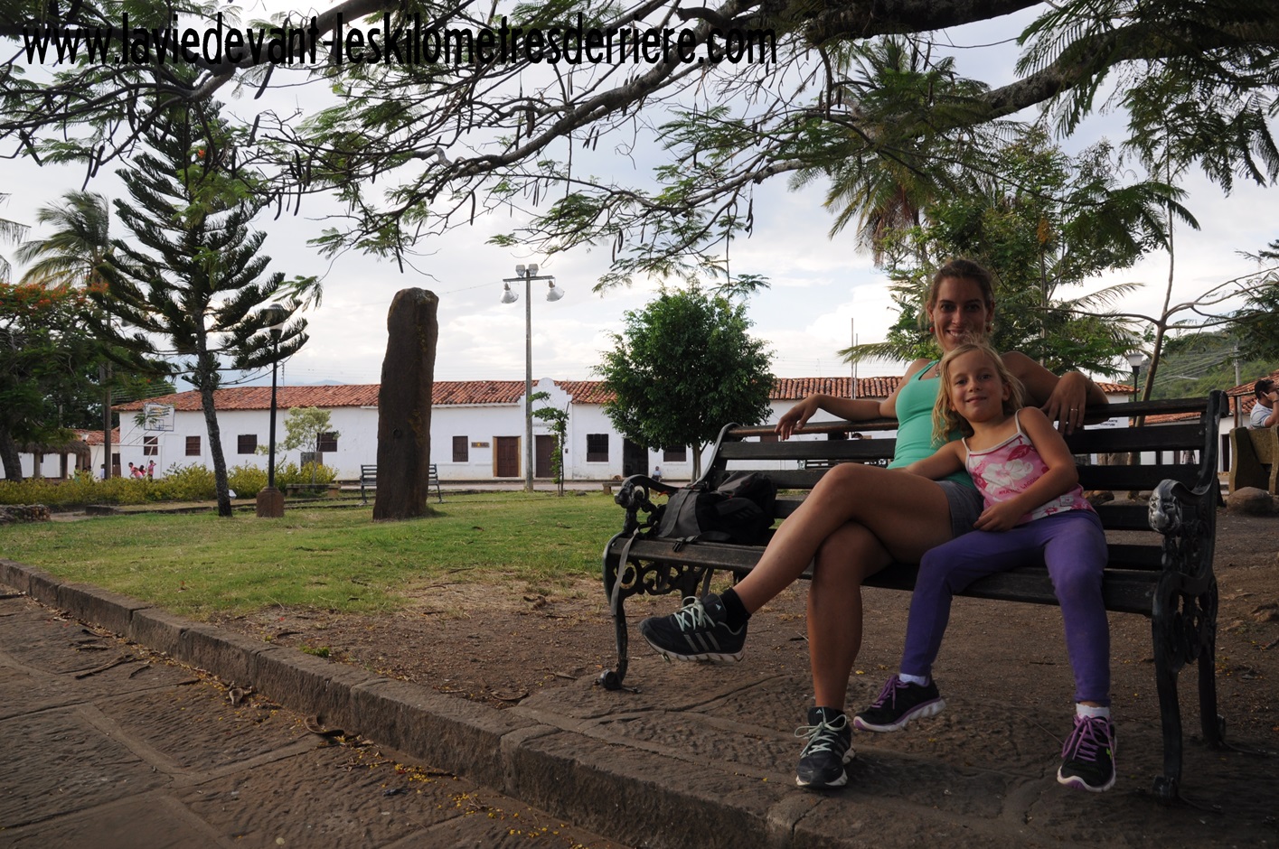 Les maisons sont peintes en blanc, comme beaucoup de villes coloniales typiques. L’église trône fièrement en face de la place du village, là où nous nous arrêtons un moment afin de nous relaxer et de laisser les enfants jouer.