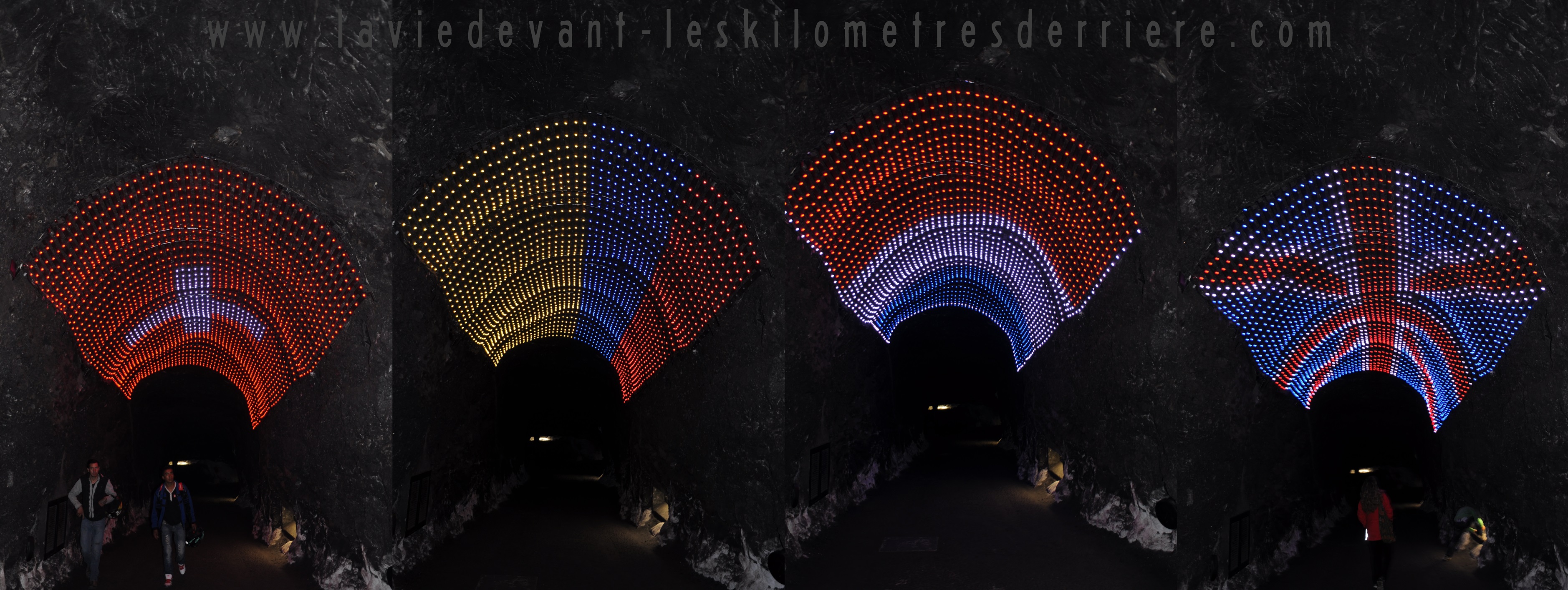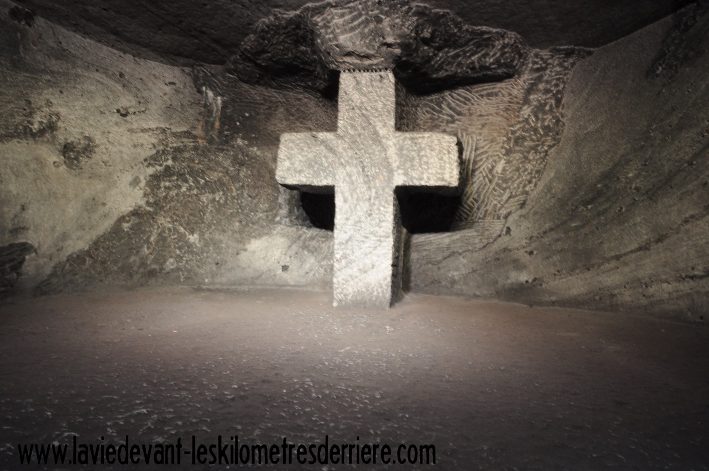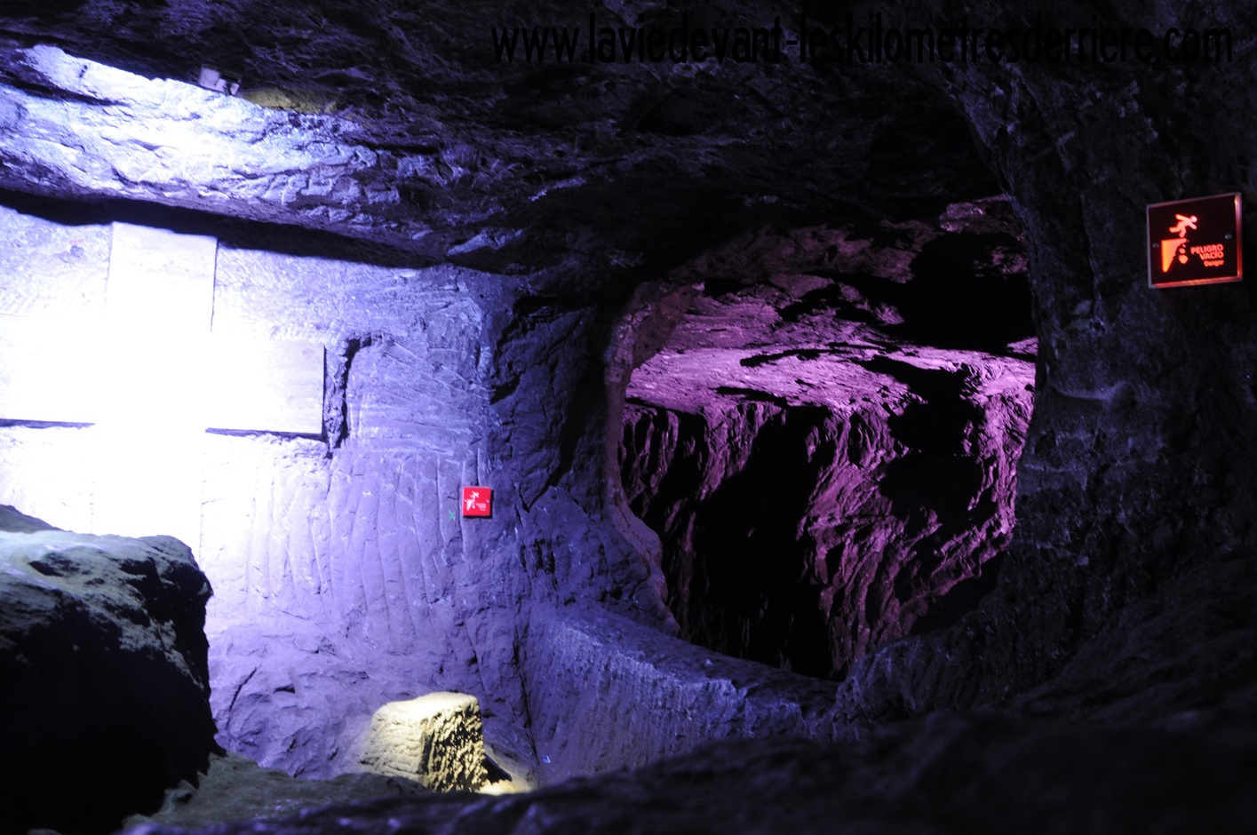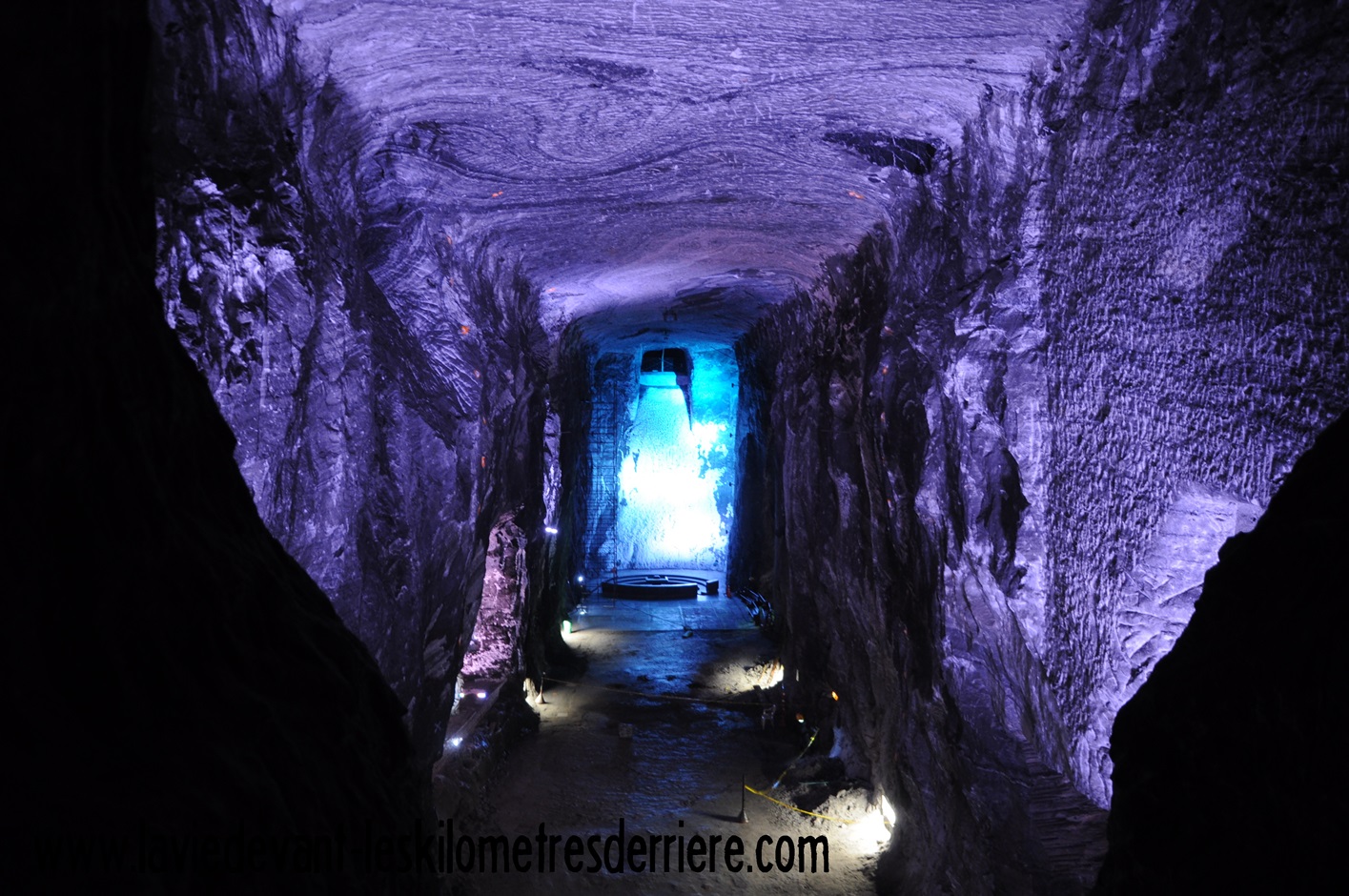 Et bien c’est grandiose ! En réalité, la cathédrale est un des points des mines de sel exploitées depuis 500ans, dont les premiers à utiliser ce gisement de sel, présent grâce aux anciennes mers, était le peuple indigène des Muiscas. Ces mines sont faites de quatre niveaux, représentant quatre périodes d’exploitation. Celle que nous visitons est le troisième, à 180m sous le sommet de la montagne.
