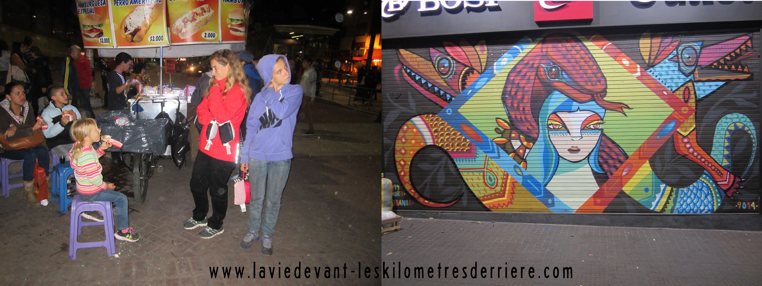 Nous terminons cette journée et ce séjour à Bogota en visitant la carrera 7, de nuit. Nous y trouvons des artistes de rue et des marchands ambulants, une ambiance agréable !