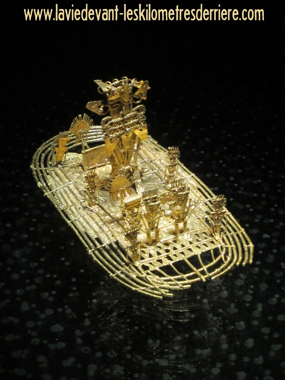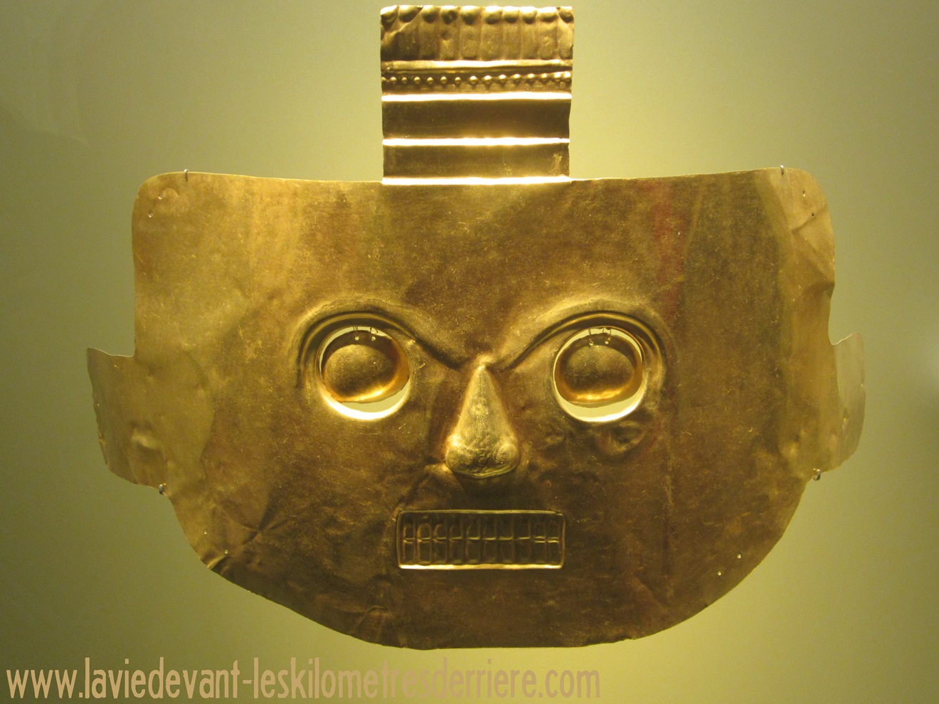 Le lendemain, vendredi, nous partons à la visite du musée de l’or, un incontournable ici à Bogota. Ce serait le musée où il s’y trouve le plus grand nombre d’objets d’or de toutes époques. Vrai ou pas, il y en a bien assez pour ressortir de là avec la vision des couleurs déformée et teintée de jaune ! En plus, chacune des pièces est mise en valeur. La mise en scène sur fond tantôt blanc, tantôt noir, fait ressortir le métal doré.