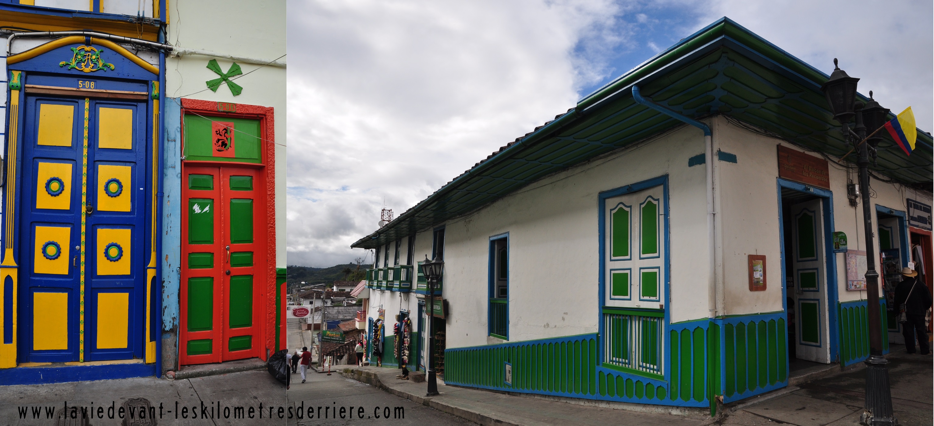 Il en faut pour tous les gouts et toutes les couleurs ! Il est possible, aussi, que nous devenions exigeants avec le temps. Nous avons quitté Goyabal ce matin pour nous rendre dans une ville dont on nous a souvent et dont les guide en parle comme un incontournable (?) ! Il est vrai que Salento à quelque chose de sympathique et agréable à l’œil, mais pour nous, c’est sans plus. Si Claire a plus la capacité que moi à faire fi des côtés négatifs pour apprécier le design des portes et fenêtres qui décorent la ville….