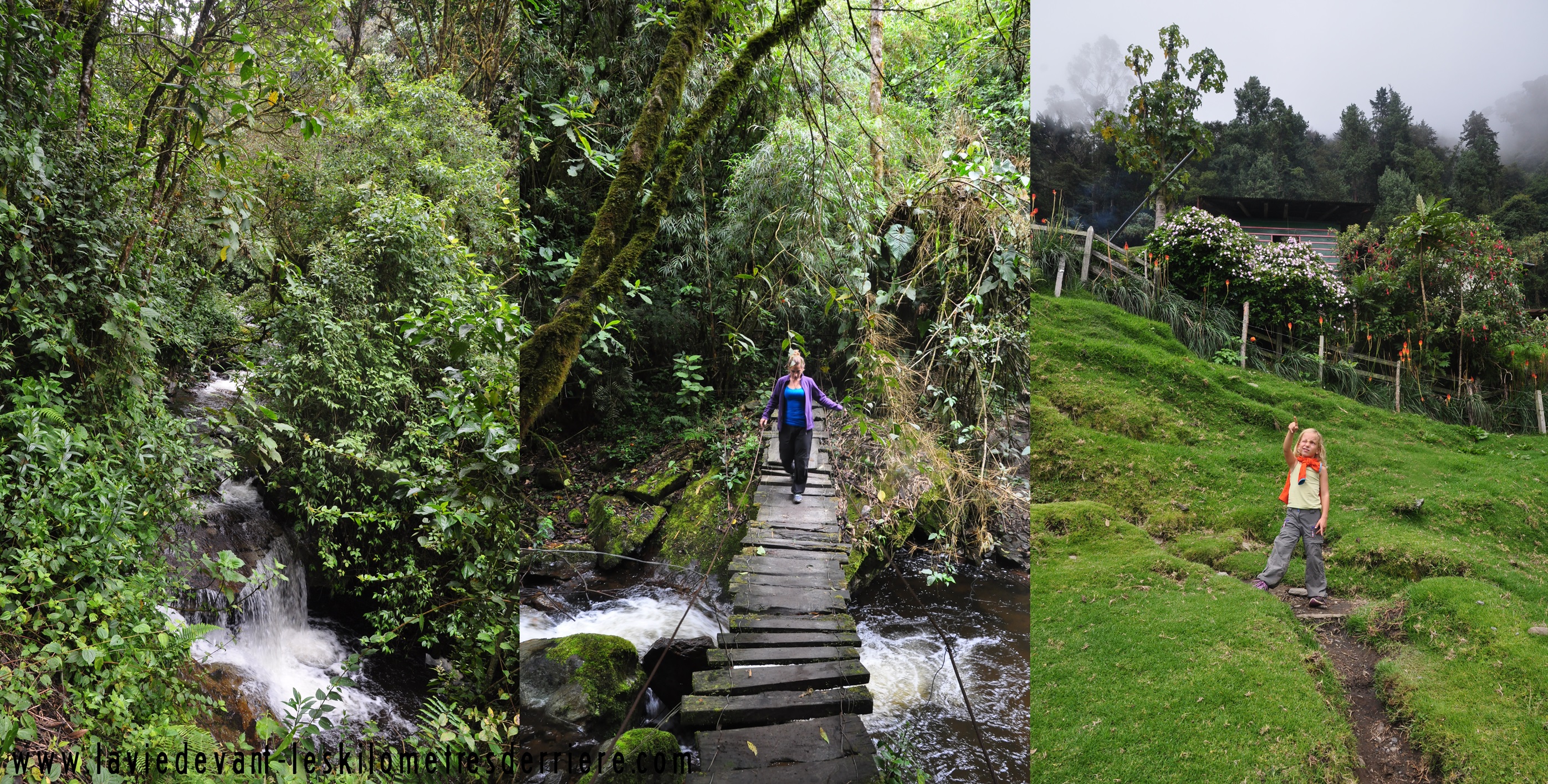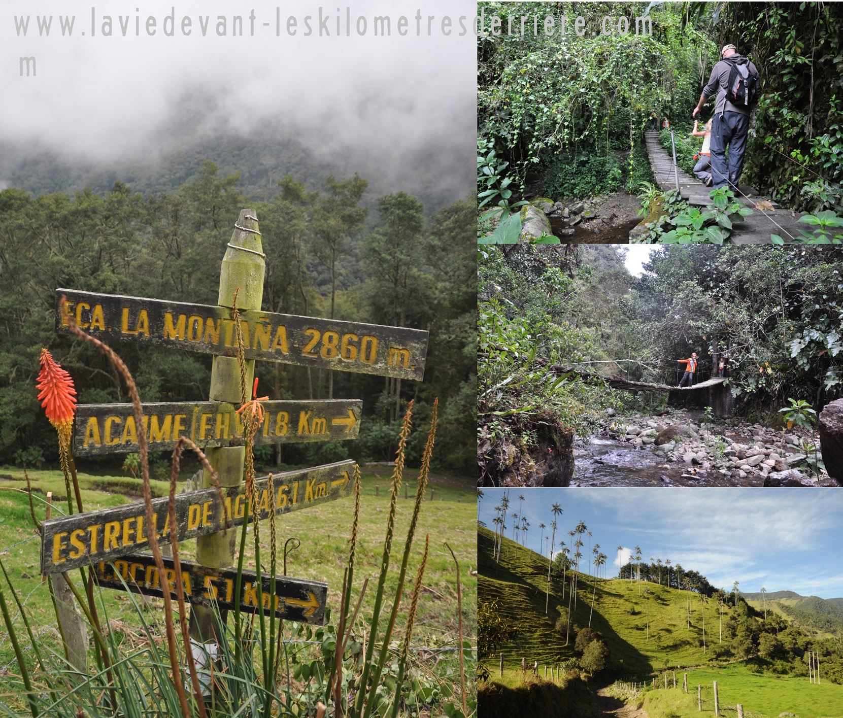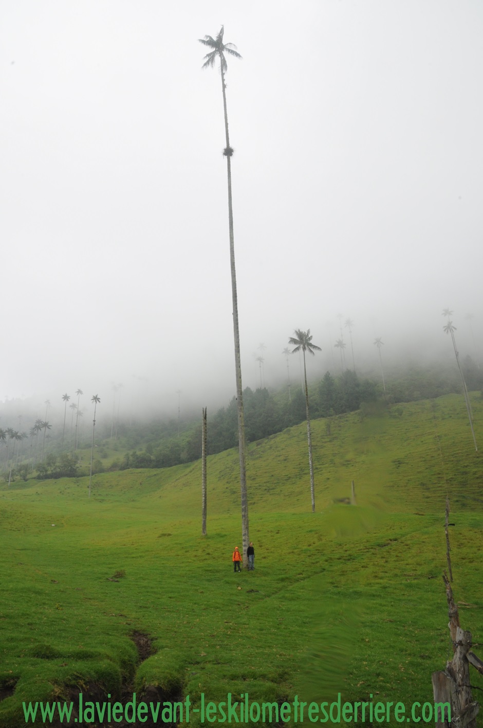 Nous repartons de Salento le vendredi soir pour aller au fond de la vallée, celle de Cocora. Là, c’est à nouveau une réussite de marketing, ou comment faire une attraction touristique de pas grand-chose. Heureusement, le sentier pédestre y est gratuit. Et vue l’état de celui-ci (bon il avait plu la veille), nous aurions été un peu agacés. Le centre est tellement boueux que nous marchons dans le champ, et c’est là que je glisse et me rattrape à la barrière sur ma gauche… une barrière de barbelés ! Quelques soins plus tard nous continuons et montons dans le brouillard, redescendons sous la pluie ! 13km, 900m de dénivelé et 3h de marche. Nous apprécions le fait de nous dérouiller un peu.