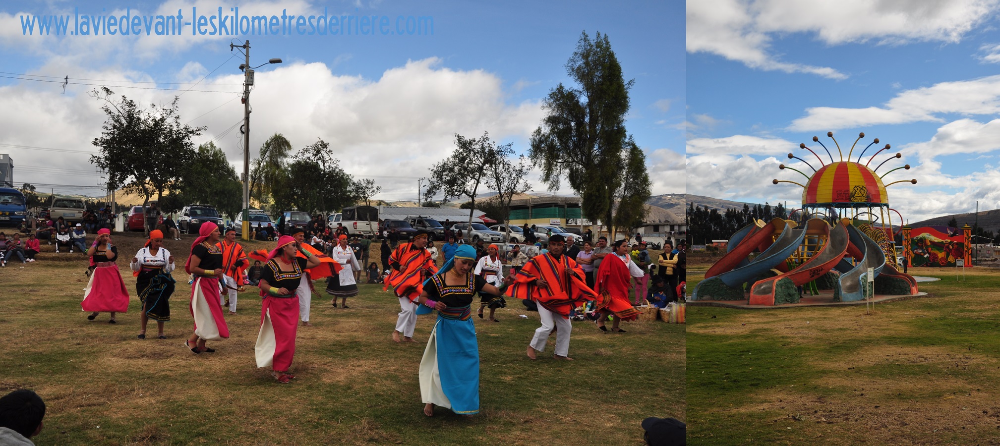 Peu importe, nous sommes là et décidons de nous rendre, le dimanche soir, à la Hacienda Guachala après avoir passé l’après-midi dans le Parque Recreational de Cayambe, une place de jeu pour enfant absolument immense. Il s’y trouve des quads, des bateaux sur un étang et des jeux en pagaille. Nous avons même assisté à une danse de locaux !