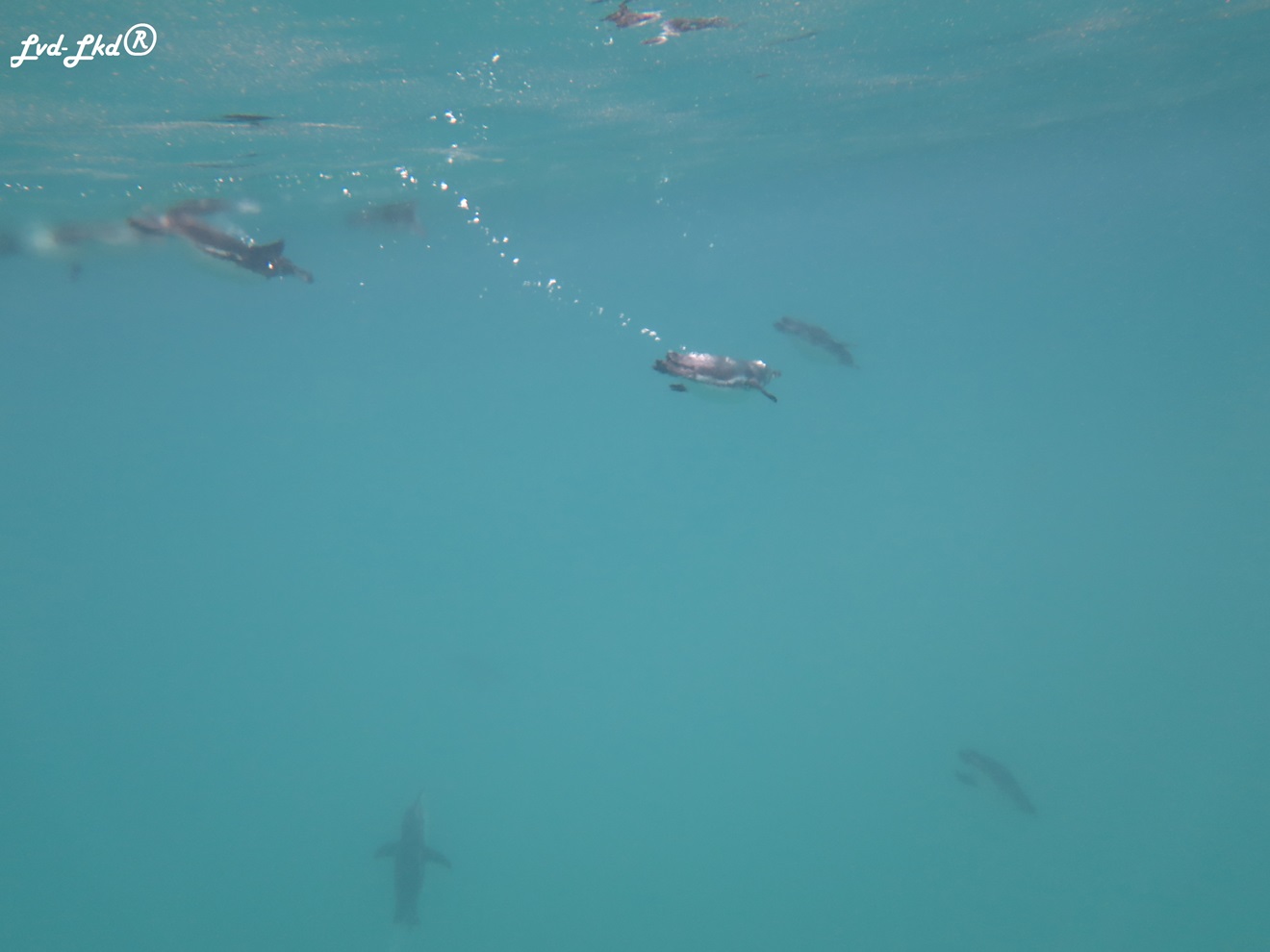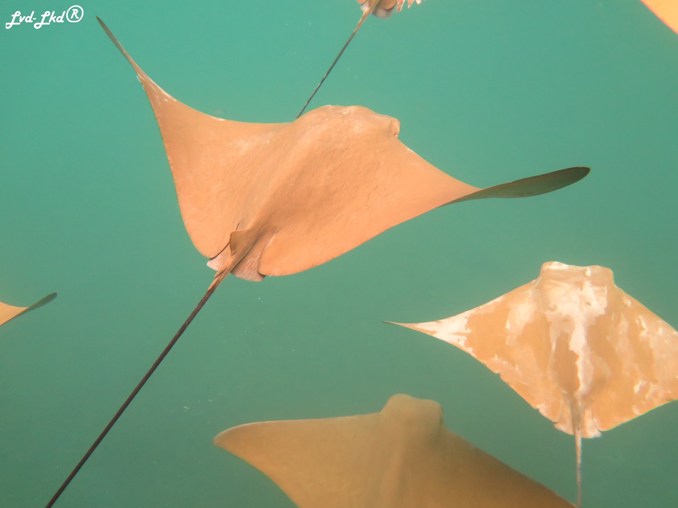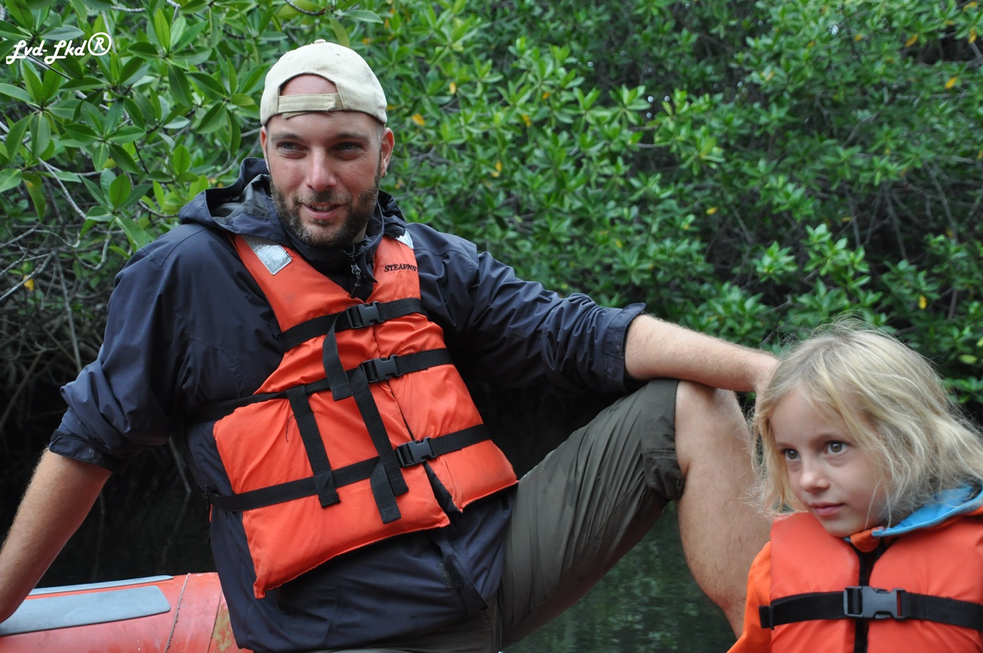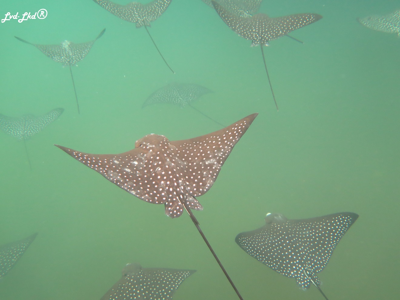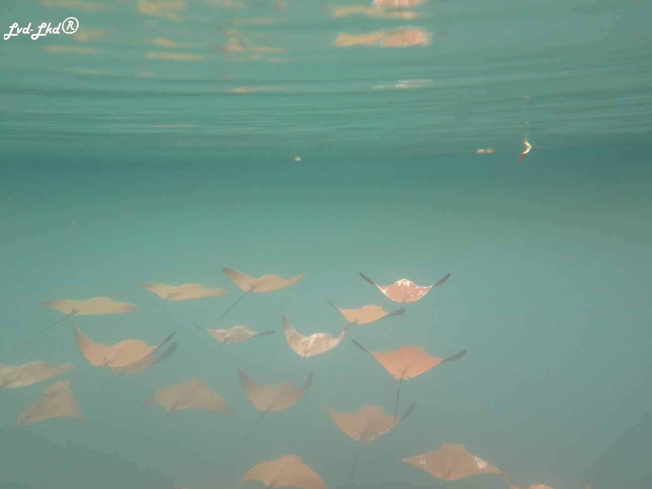 Bahia Elisabeth offre de superbes choses à voir. Une partie de celle-ci est faite de Mangroves abritant plusieurs sortes de raies, dont une nursery de raies aigle mais aussi des raies jaunes dont je ne connais le nom. C’est aussi ici que j’ai pu prendre la première belle image d’un fou à pattes bleues. Et quel bonheur pour Jimmy de voir toute une troupe de Manchots Galápagos !