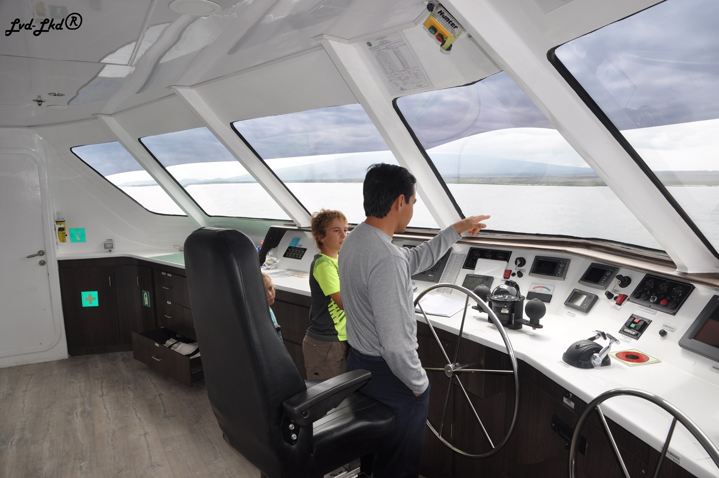Entre les deux activités du jour, Jimmy profite de prendre un cours de pilotage du catamaran !