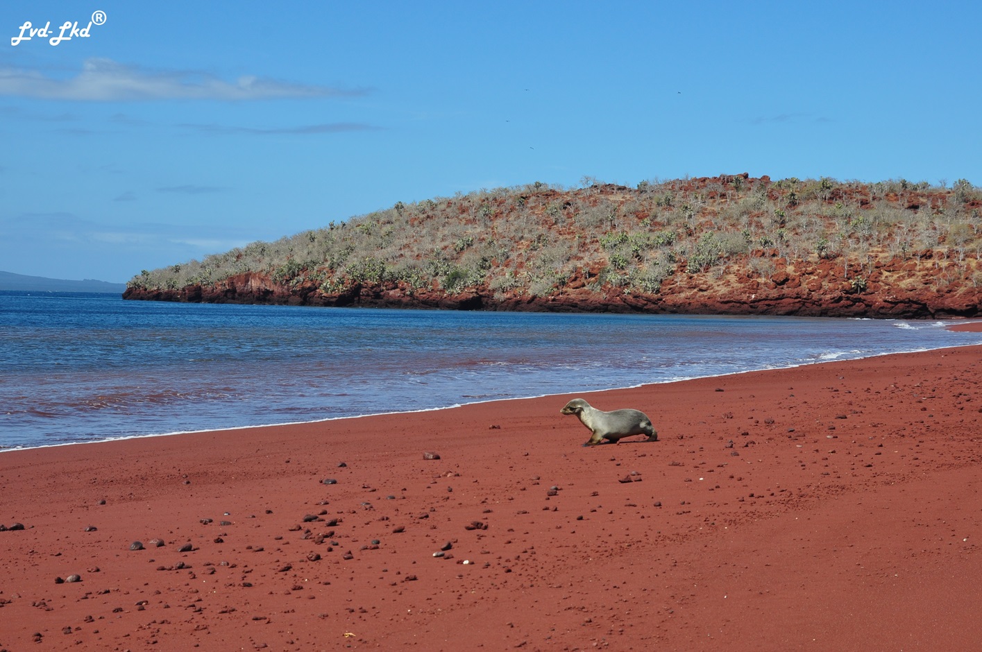 Puis, la magnifique plage d’Isla Rabida. Par oxydation des molécules d’acier présentes dans la roche de lave, le sable est d’un rouge magnifique.