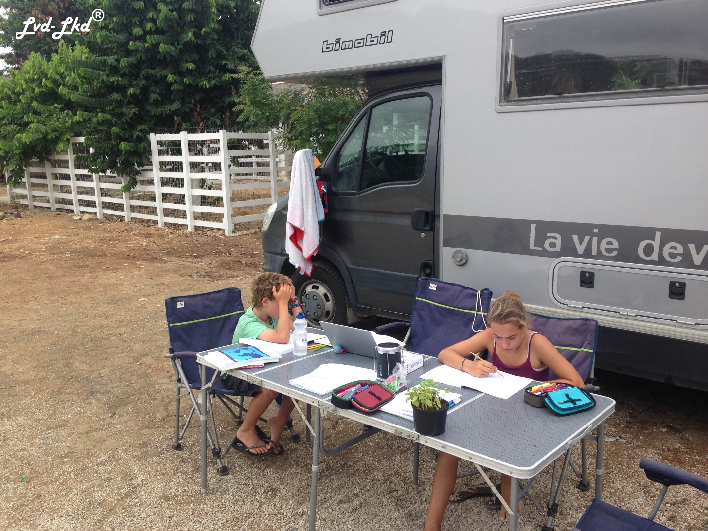 Mais aussi, le lundi est venu le temps de se remettre au travail. Jannis est venu de Suisse avec notre nouveau matériel scolaire à distance de l’école Legendre. L’entrée en matière fut difficile, car le pavé est gros ! Et surtout, les principes d’apprentissage sont totalement différents, beaucoup plus intellect en France. Je comprends mal comment le plaisir de lire peut être transmis à des enfants lorsqu’on leur fait lire des textes tant intellectuels et abstraits que même moi je ne les comprends pas sans lire leur explication ! Bref, à part cet aspect, les cours ont l’air bien ficelés et c’est à nous de trouver notre rythme de croisière !