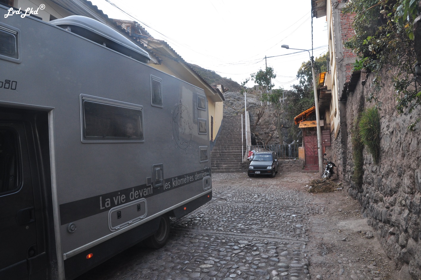 En arrivant à Cusco, nous faisons l’erreur typique des camping-cars et nous retrouvons coincés dans une rue sans issue, qui se termine par un escalier !