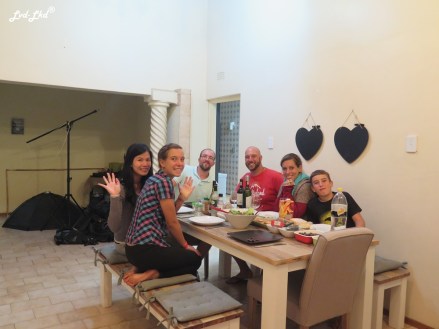En sortant du musée, je regarde le GPS en me demandant si j’y trouverais un endroit de bivouac. C’est en faisant cela que je réalise que nous sommes à 25km à peine de chez Ruaan et Jade, des sud-africains que nous avons déjà rencontré à 3 reprises. Et bien ce soir ce sera la quatrième… après un petit coup de fil, nous prenons la route pour nous rendre chez eux, où ils improvisent un super souper pour nous recevoir. Nous sommes très heureux de les retrouver encore une fois et passons une excellente soirée en leur compagnie. Merci à eux…